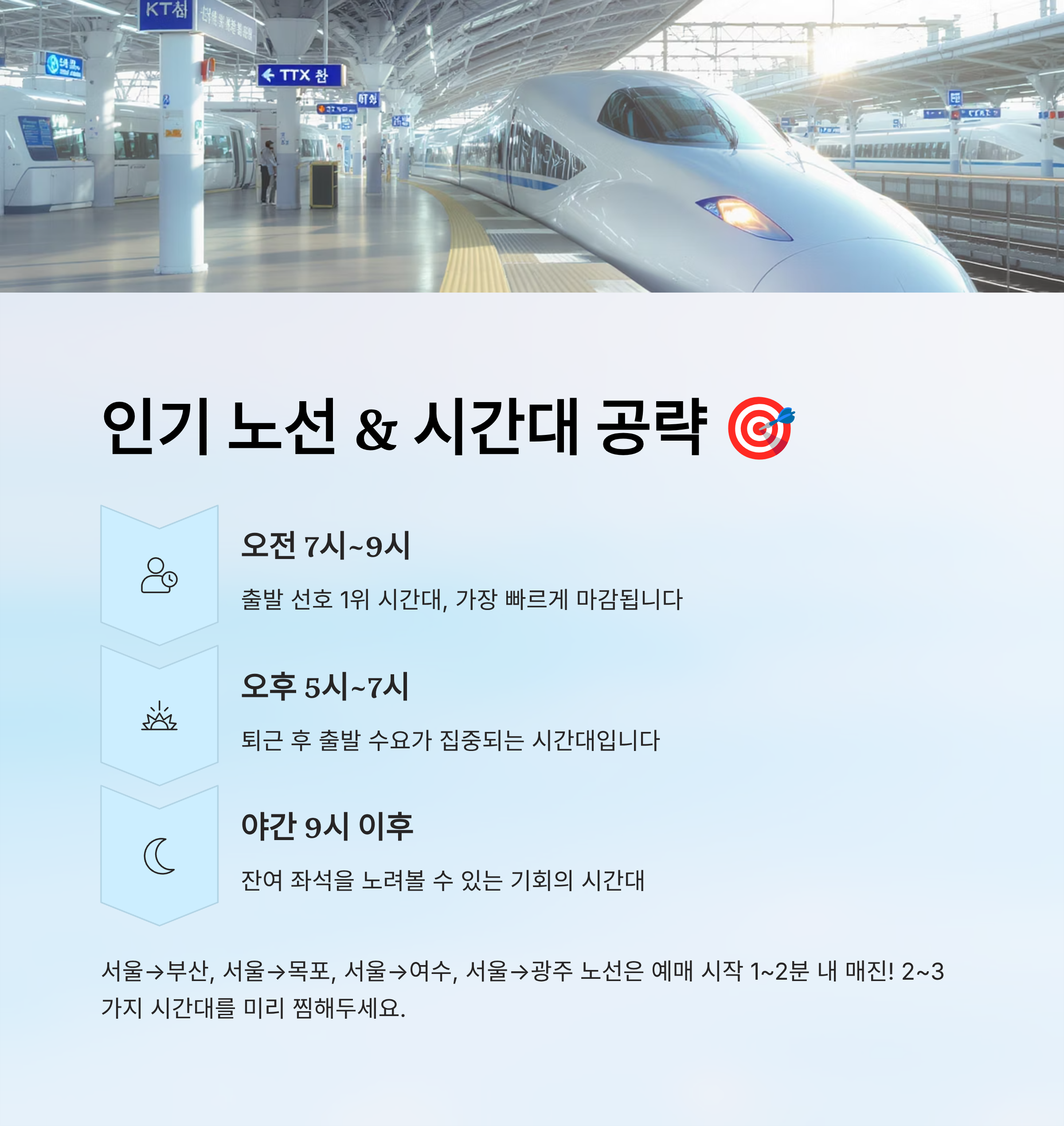 ✔ 야간 9시 이후: 잔여 좌석 노려볼 수 있는 시간대