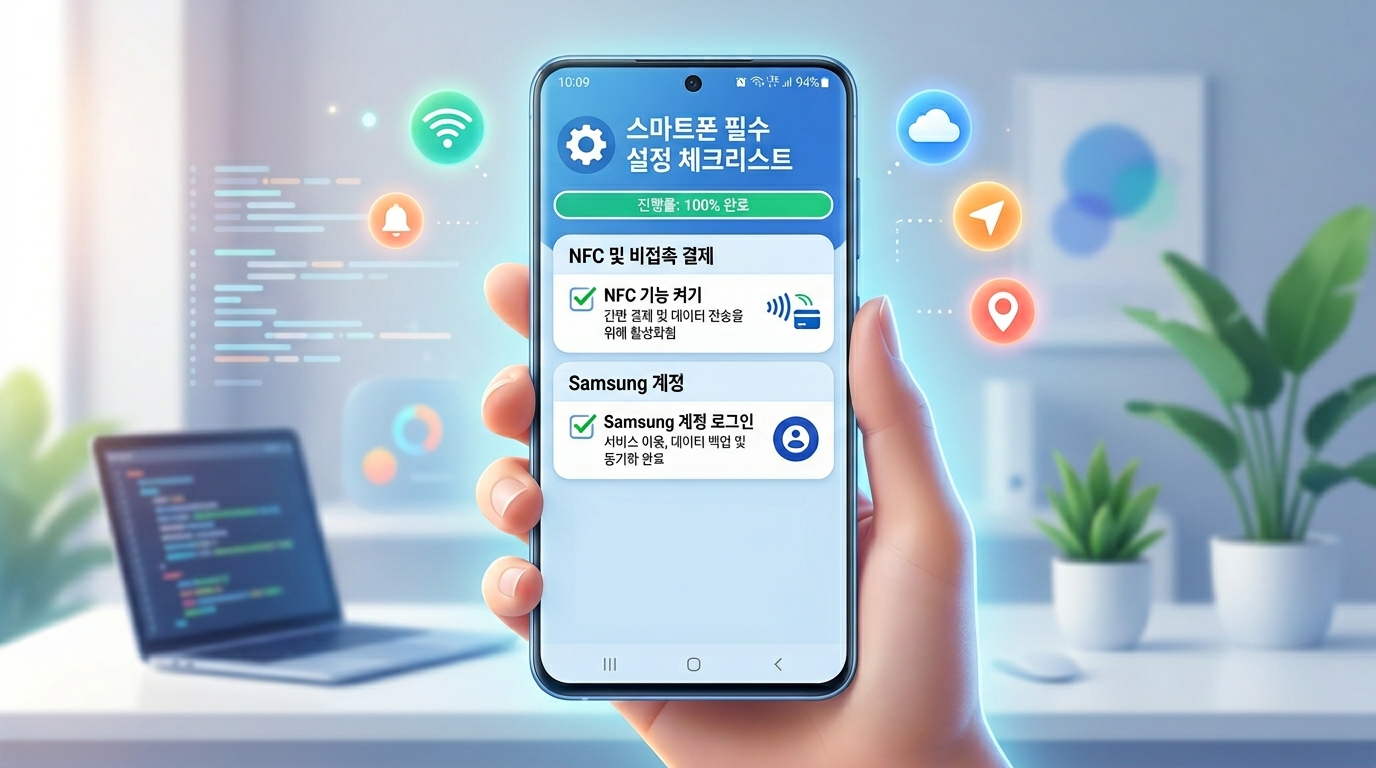 무작정 앱을 켜기 전에 기본 세팅이 되어 있어야 오류 없이 한 번에 등록됩니다. 삼성 계정 로그인은 기본이고, 무엇보다 NFC 설정이 가장 중요해요.