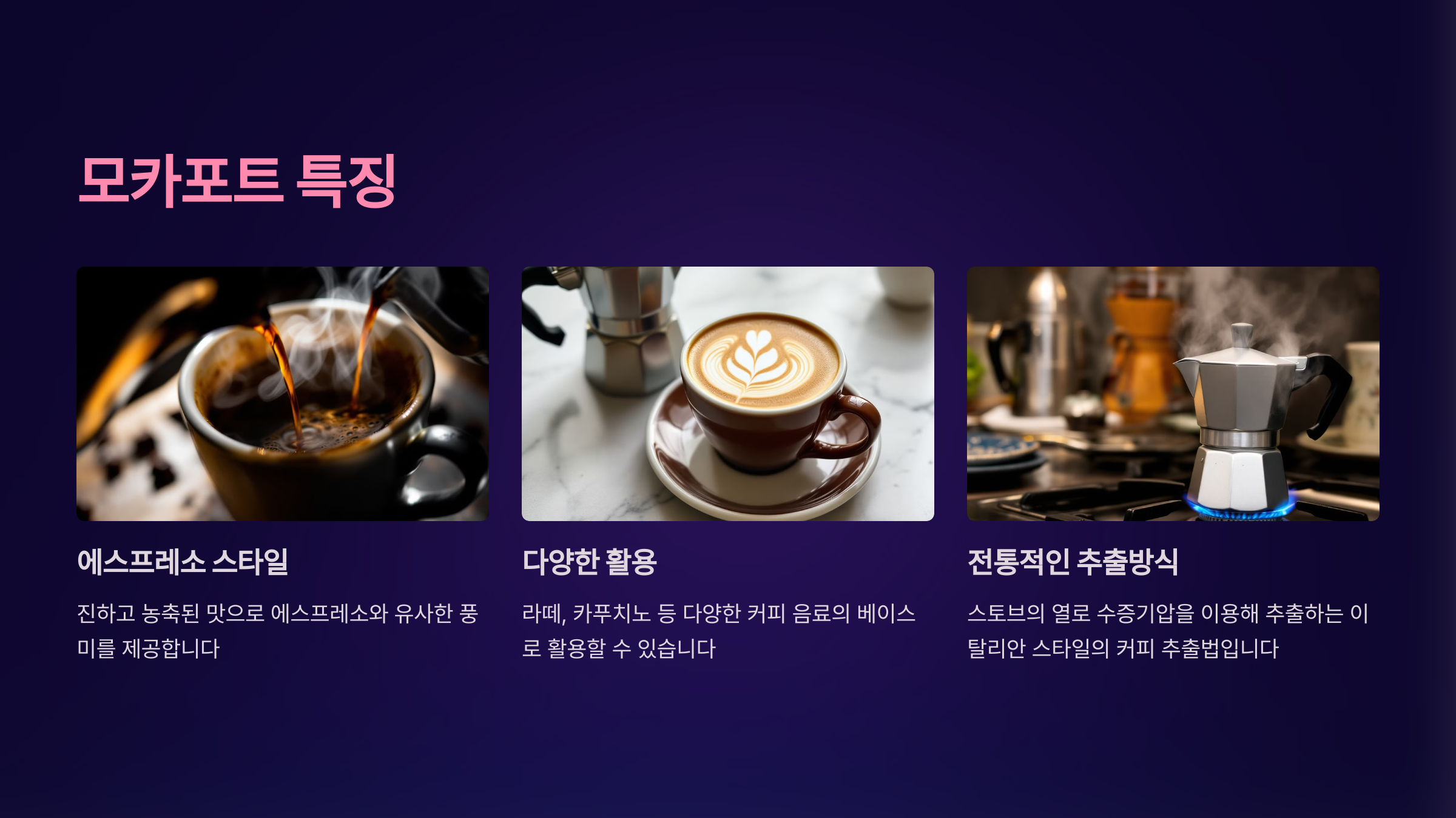 - 커피 본연의 다양한 풍미를 잘 느낄 수 있음
