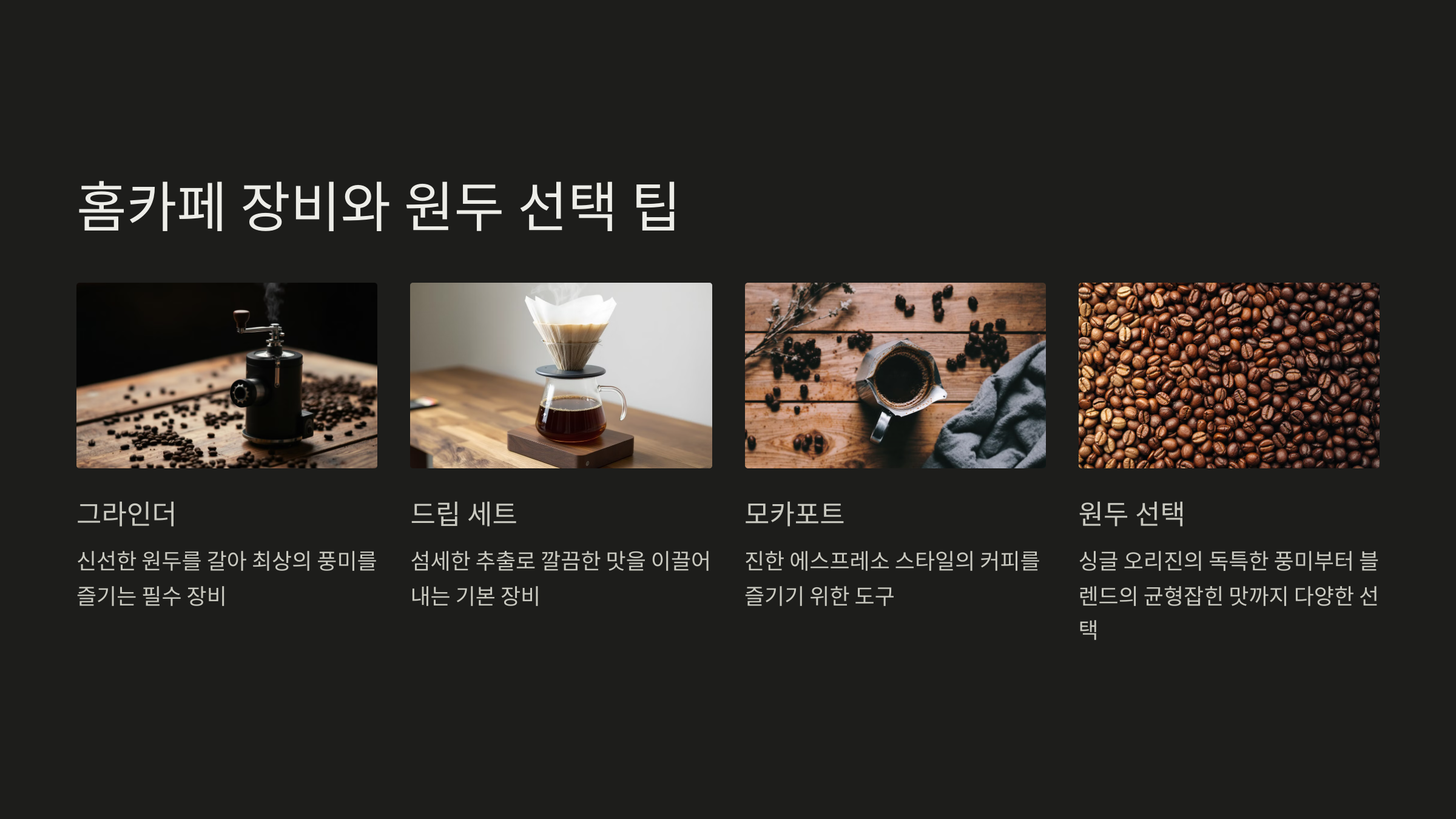 4️⃣ 홈카페 장비와 원두 선택 팁 🛠️