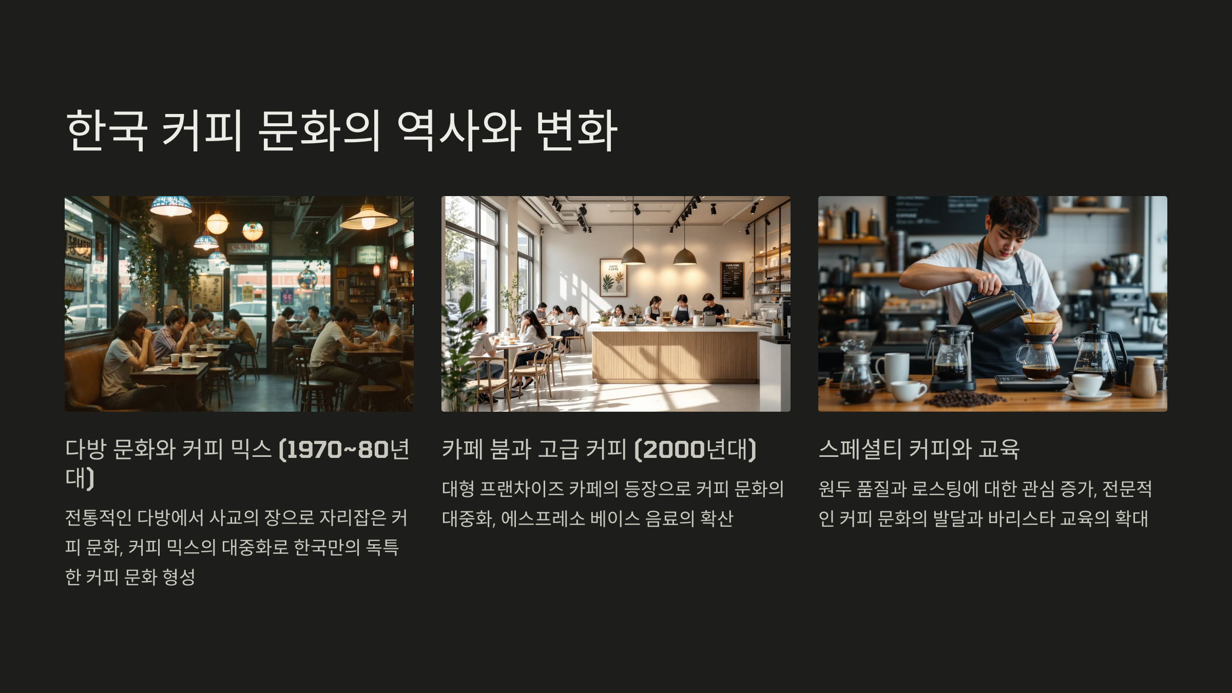 1️⃣ 한국 커피 문화의 역사와 변화 🌱
