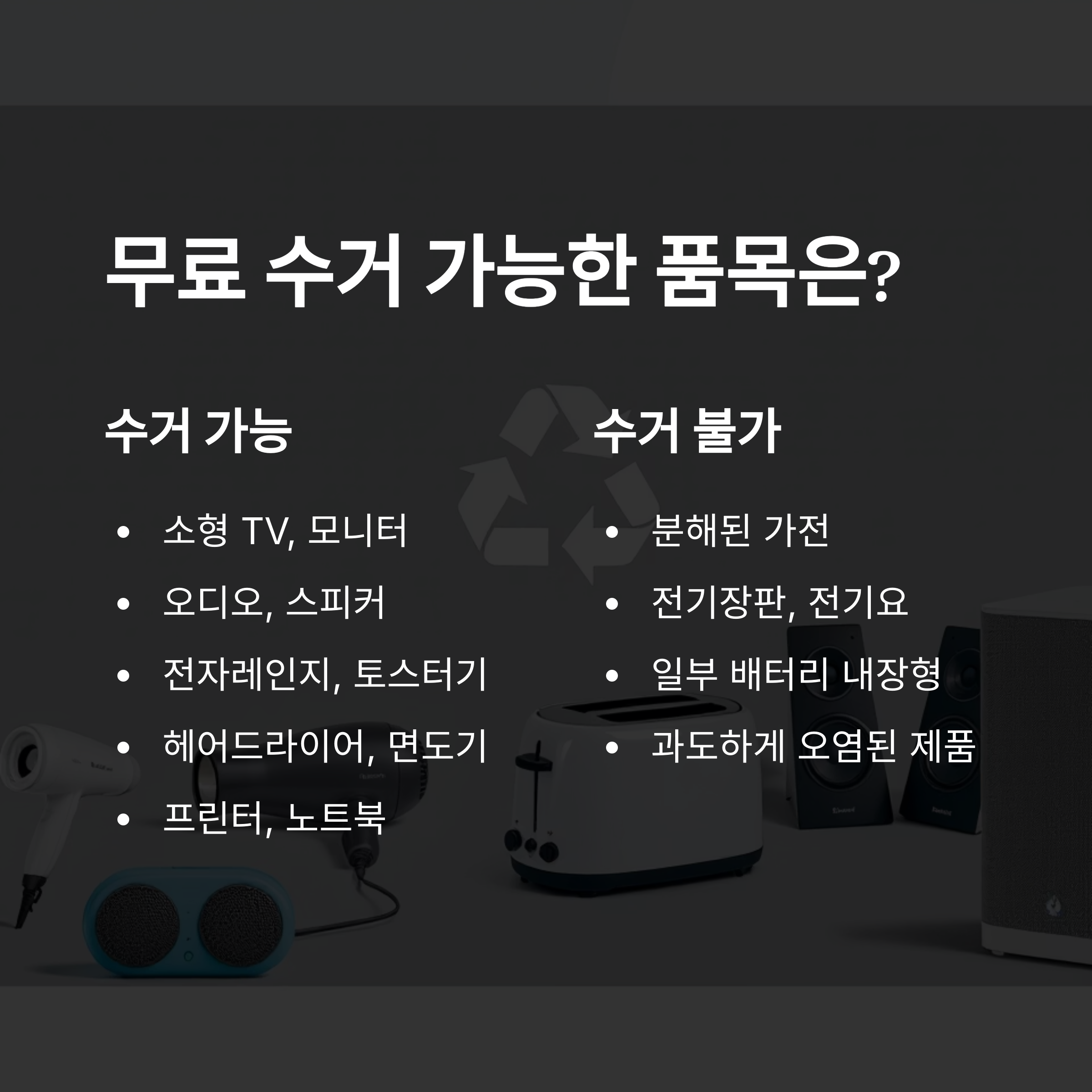 ✔ 무료 수거 가능한 주요 소형 가전