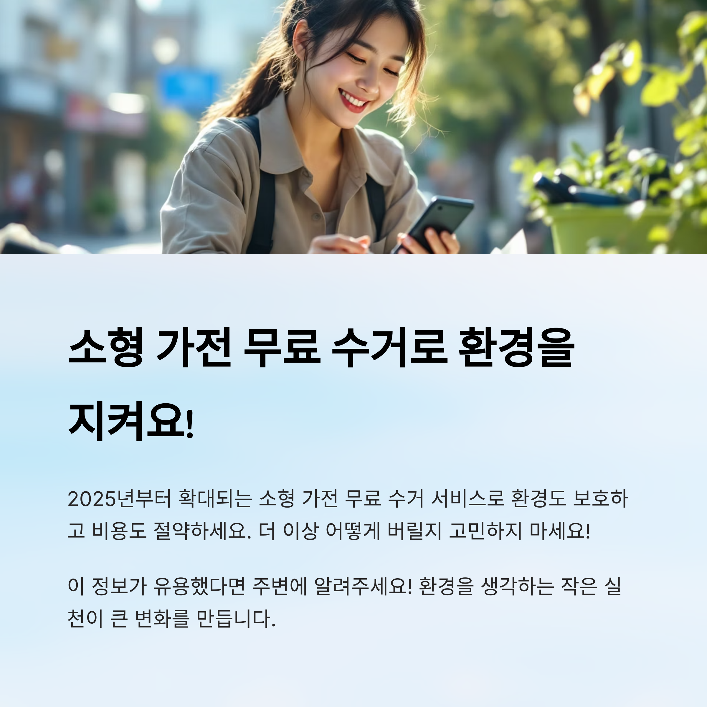 사용하지 않는 소형 가전을 그냥 버리려 했다면 STOP! 🚫 2025년부터 더욱 확대된 무료 수거 서비스를 이용하면 돈 한 푼 내지 않고 폐가전을 배출할 수 있어요. 💰