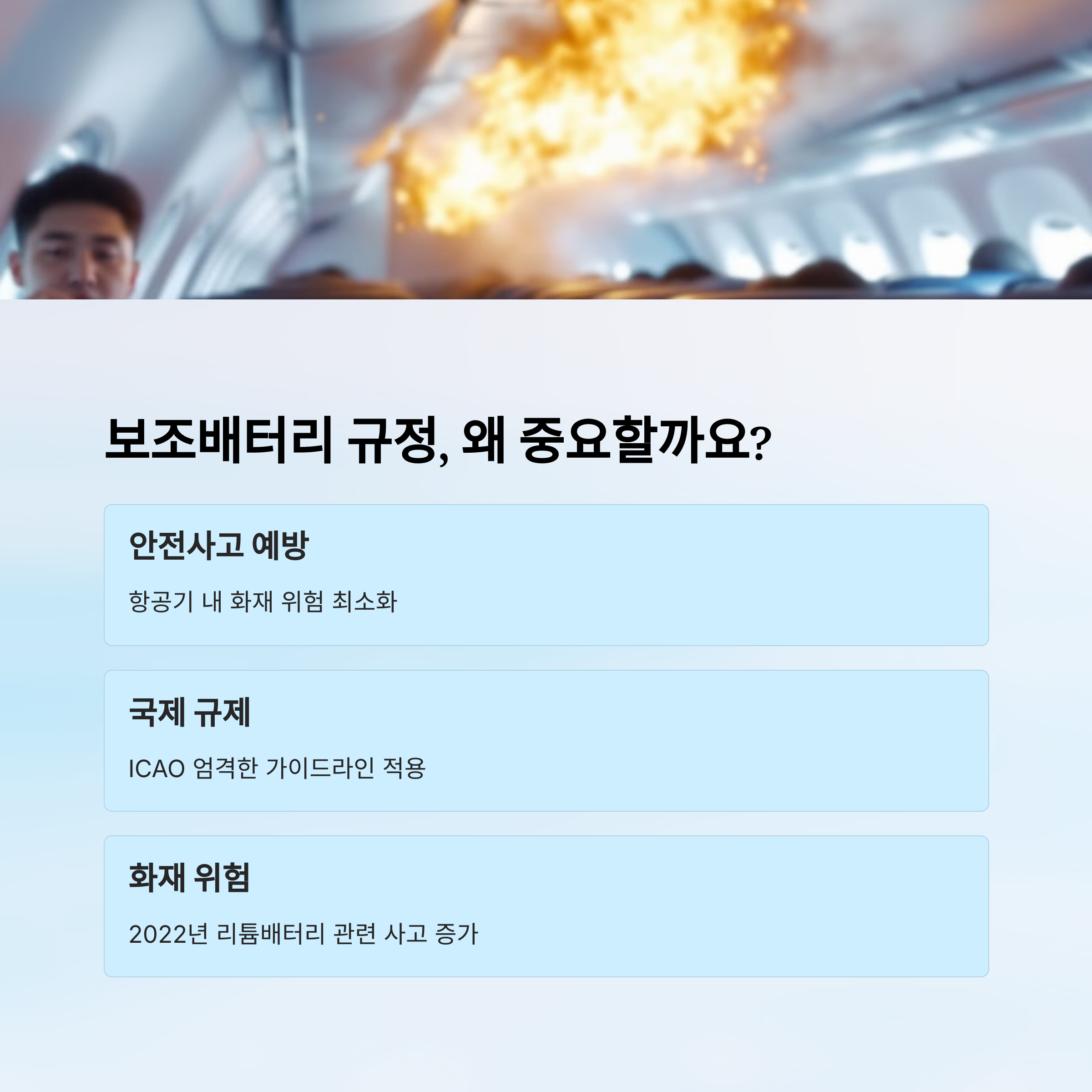 항공기 안전은 정말 작은 부분에서도 엄격하게 관리돼요. 보조배터리는 충전 기능이 편리하지만, 리튬이온 배터리 특성상 폭발 위험이 있어서 모든 항공사가 규정을 세워두고 있어요. 특히 비행 중 화재 사고를 방지하기 위해 국제적으로 기준이 마련됐답니다.