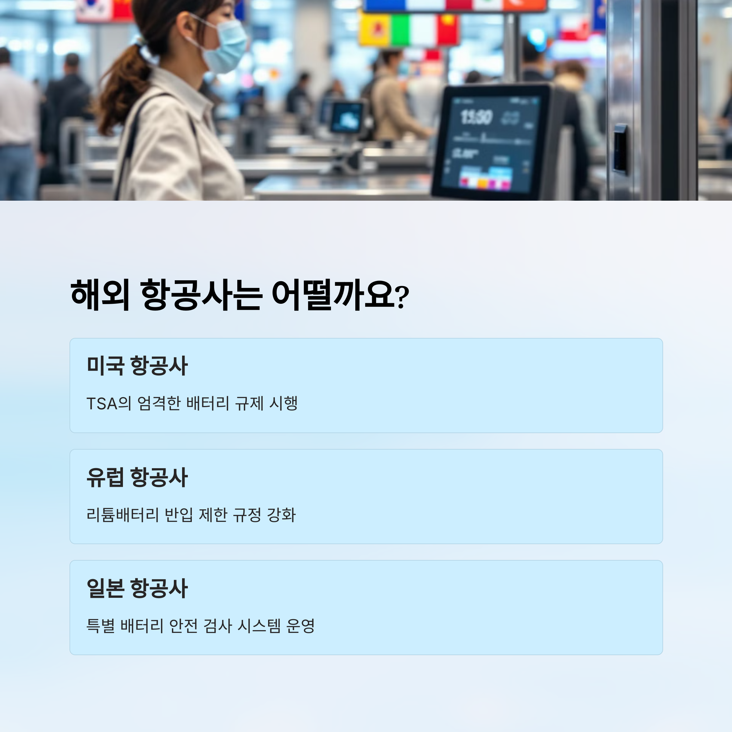 해외 항공사들의 보조배터리 규정도 대부분 IATA 기준을 따르고 있어요. 하지만 항공사마다 세부 규정이 조금씩 다르기 때문에 출국 전 확인은 필수예요. 특히 미국, 유럽, 일본 등은 보안이 엄격한 편이라 사소한 실수로도 문제가 생길 수 있어요.