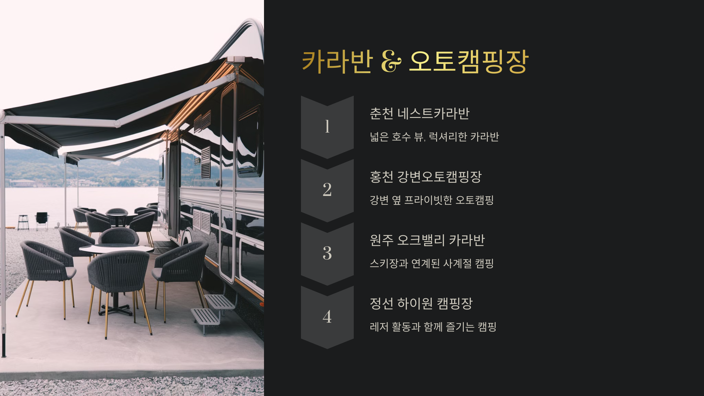 카라반 & 오토캠핑 | 차량을 이용한 편리한 캠핑 | 춘천, 원주, 정선 |