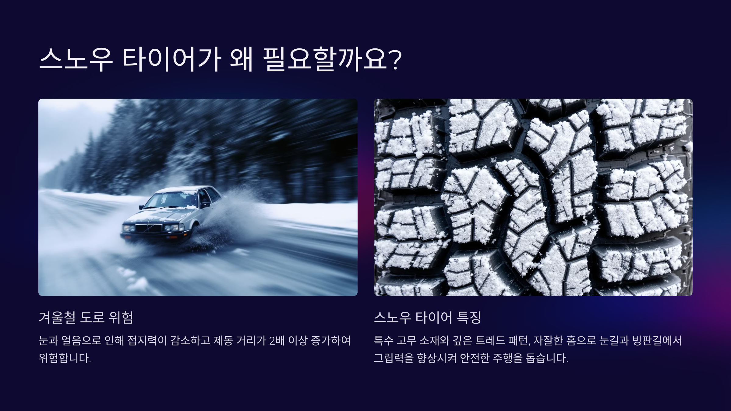 스노우 타이어가 왜 필요할까요? 🛞