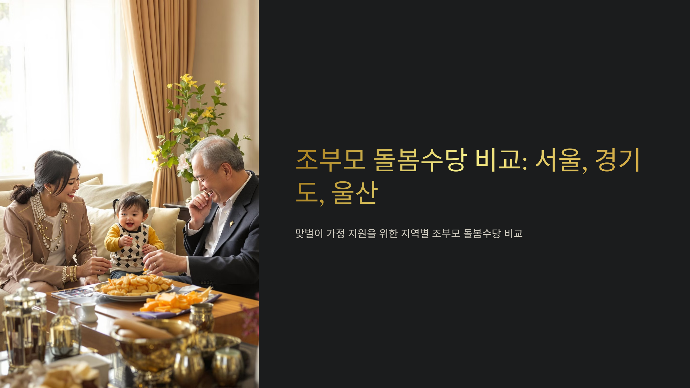 이번 글에서는 서울, 경기도, 울산의 조부모 돌봄수당을 자세히 비교해볼 거예요. 각 지역별 지원 내용을 살펴보고, 어디가 더 유리한지 한눈에 볼 수 있도록 정리해봤어요! 📊✨