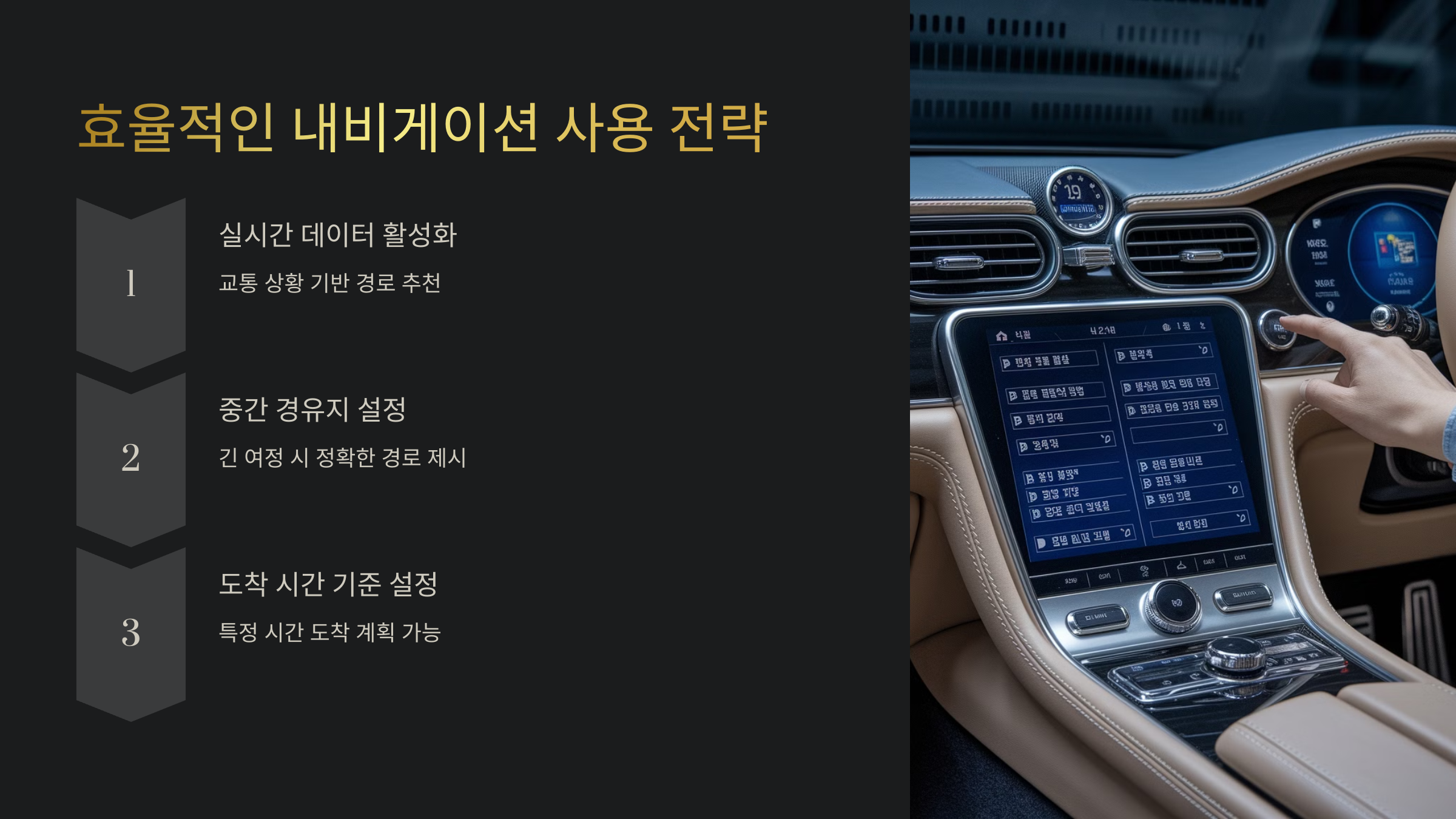 둘째, 목적지를 여러 단계로 나눠 설정하는 것도 좋아요. 긴 여정에서는 중간 경유지를 설정하면 내비게이션이 더 정확한 경로를 제시할 수 있답니다. 이를 통해 목적지로 가는 도중 가장 효율적인 경로를 찾을 수 있어요.