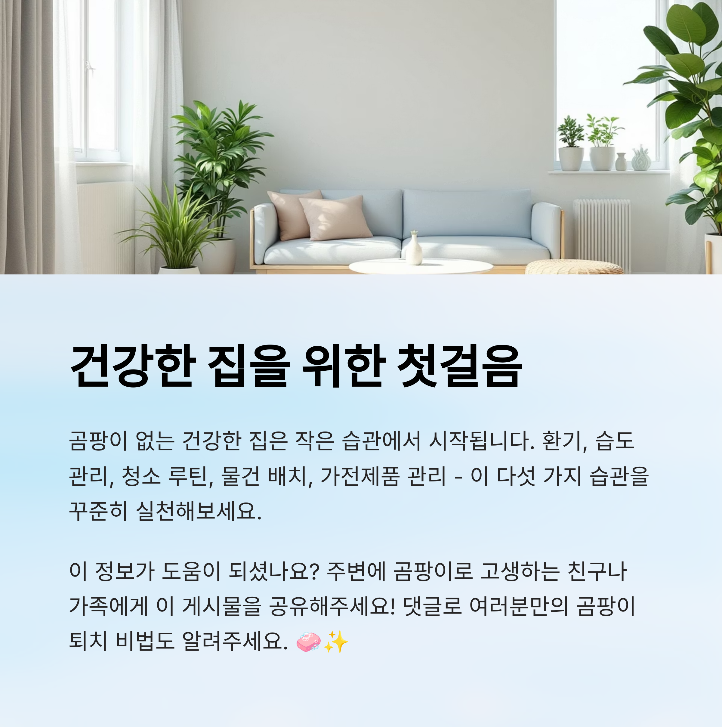 내가 생각했을 때, 가장 중요한 건 '작은 습관'의 힘인 것 같아요. 이 글에서는 곰팡이를 효과적으로 없앤 후, 다시 생기지 않도록 일상에서 실천할 수 있는 5가지 핵심 습관을 소개할게요. 놓치지 말고 따라와 주세요! 🧼