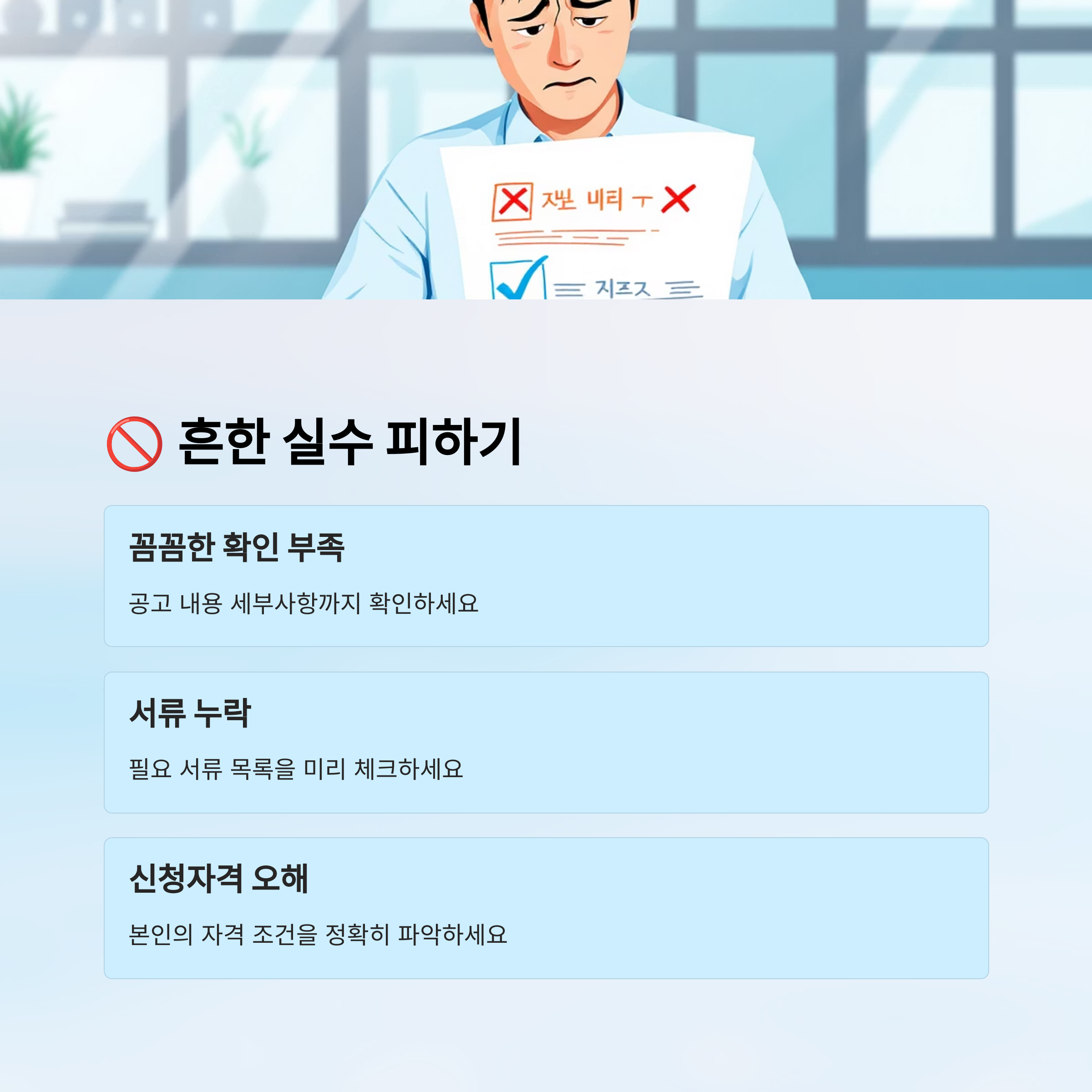 2️⃣ 제출서류 누락. 빠지기 쉬운 게 소득 관련 서류나 가족 증빙 서류예요. 특히 공통서류 외에 조건별 추가서류가 있는지 반드시 체크해야 해요.