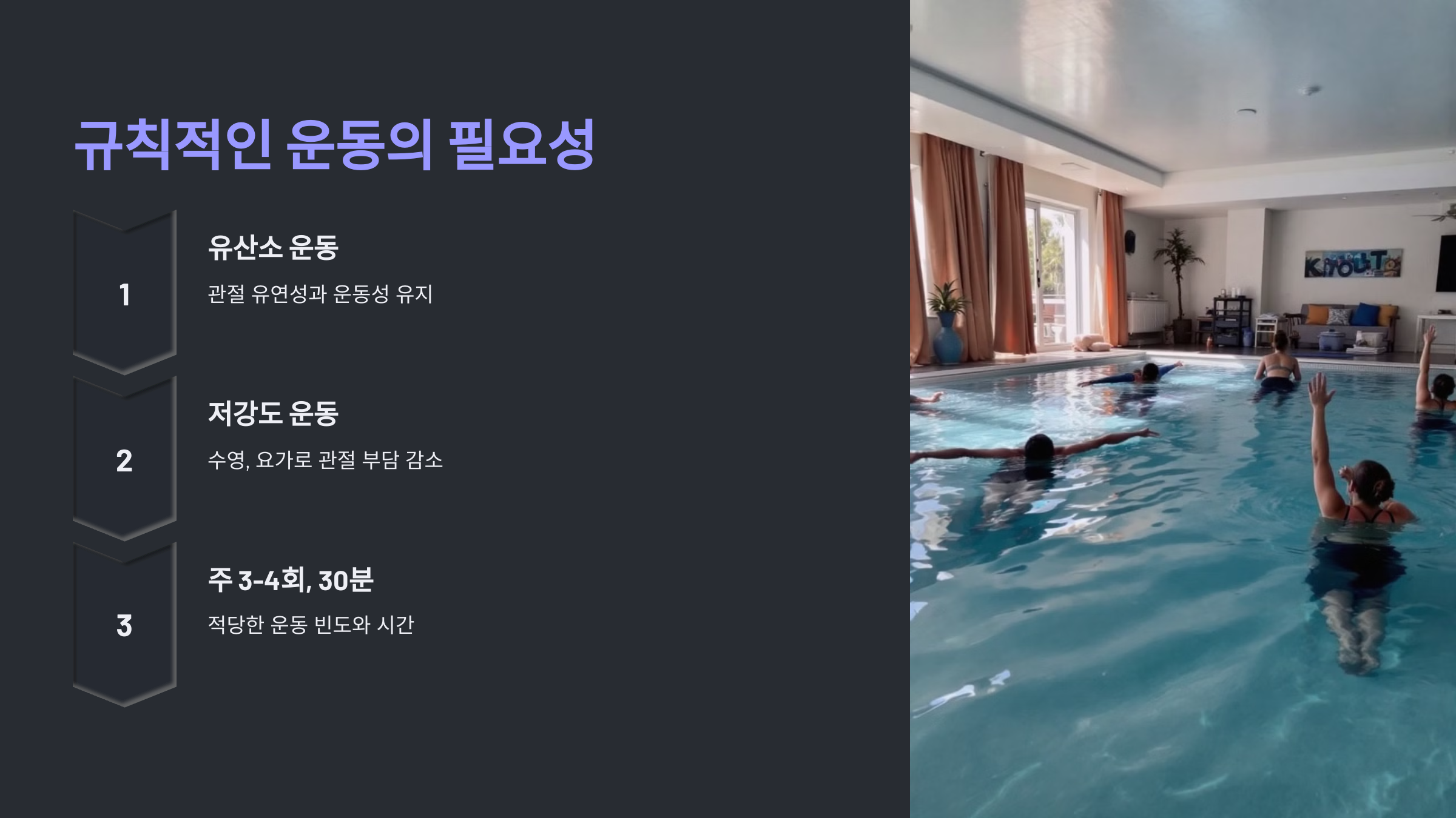 꾸준히 실천하면 관절염 예방과 통증 완화에 효과적입니다.