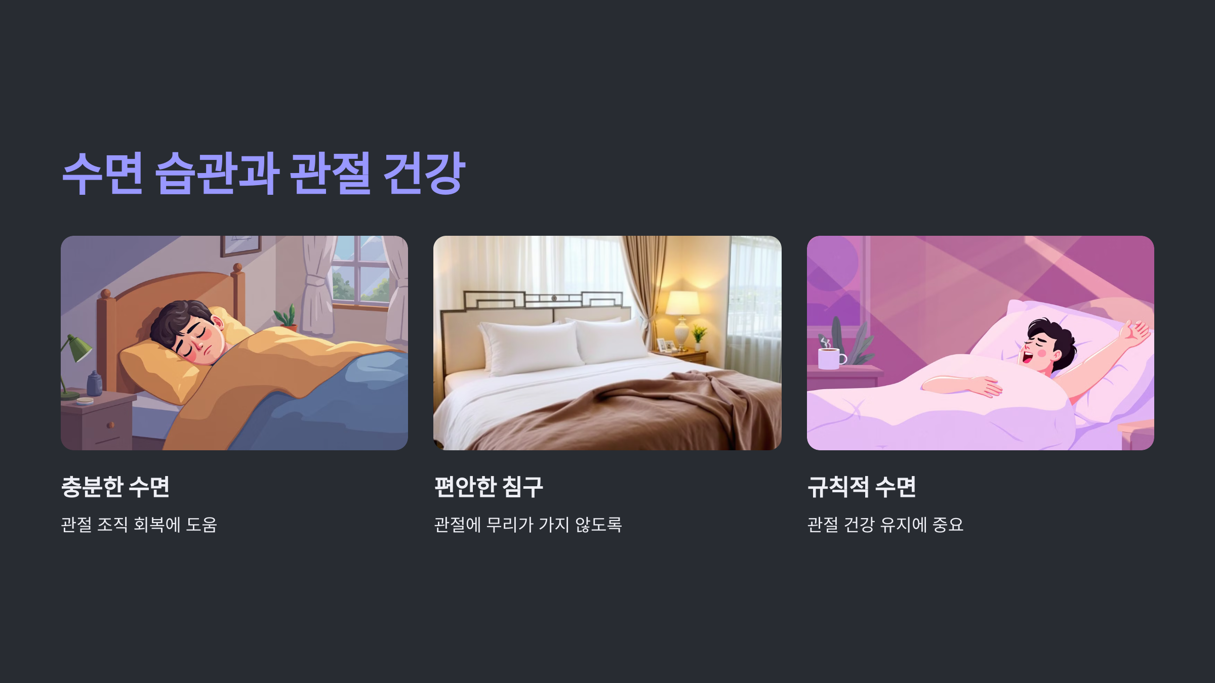 규칙적인 수면 패턴은 관절 건강을 유지하는 데 중요합니다.