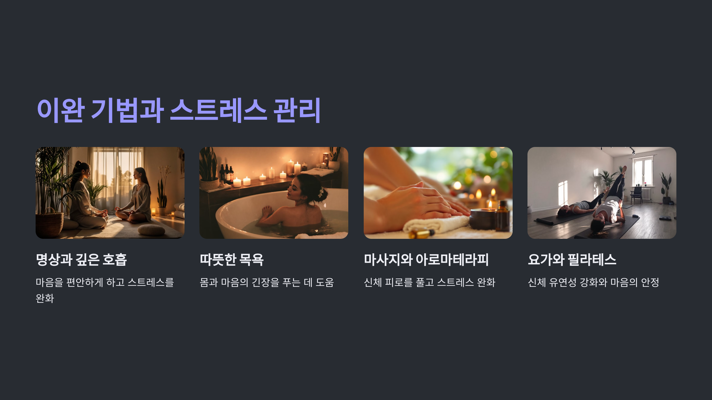 스트레스는 관절염 증상을 악화시킬 수 있으므로 관리가 필수적입니다.