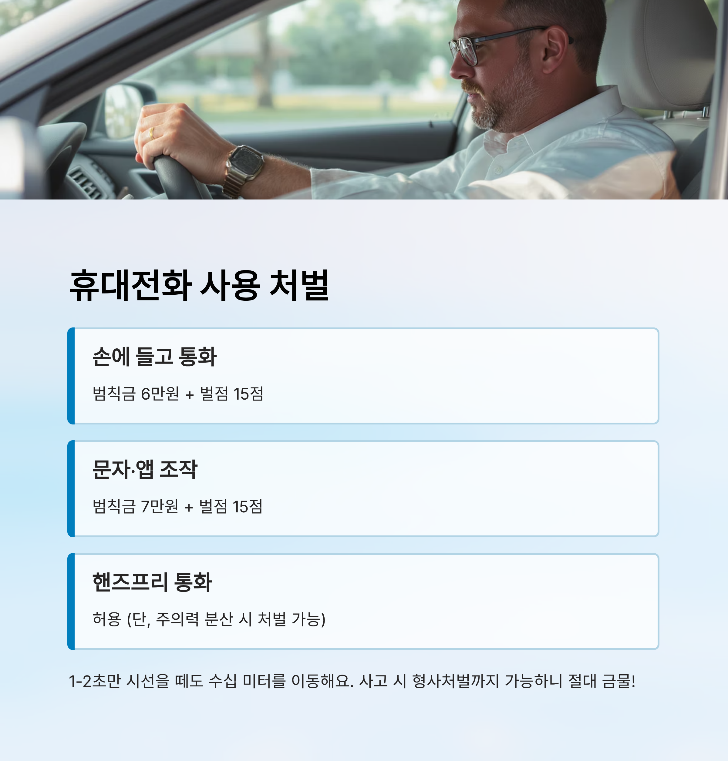 📱 운전 중 휴대전화 사용 처벌 기준표