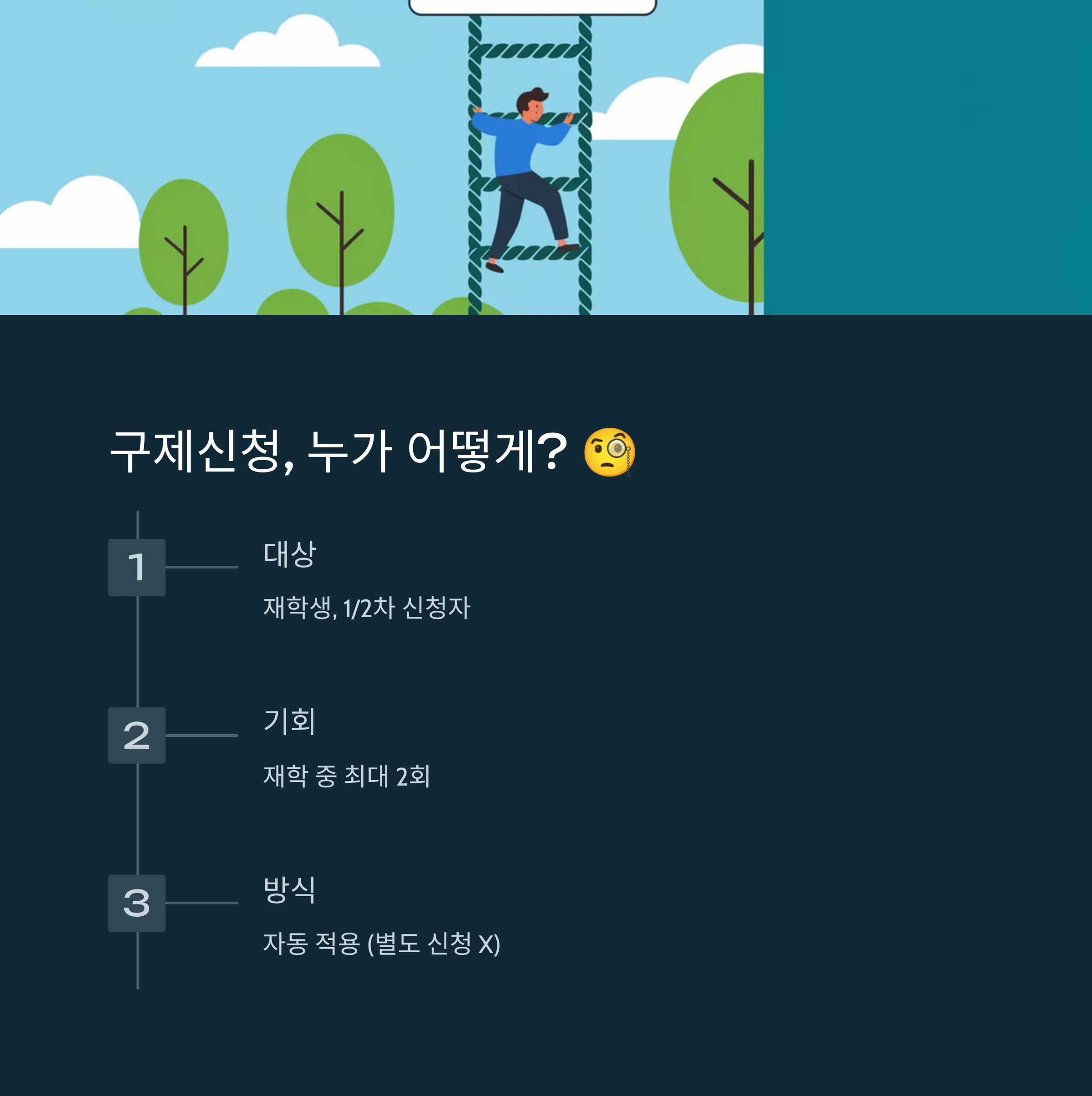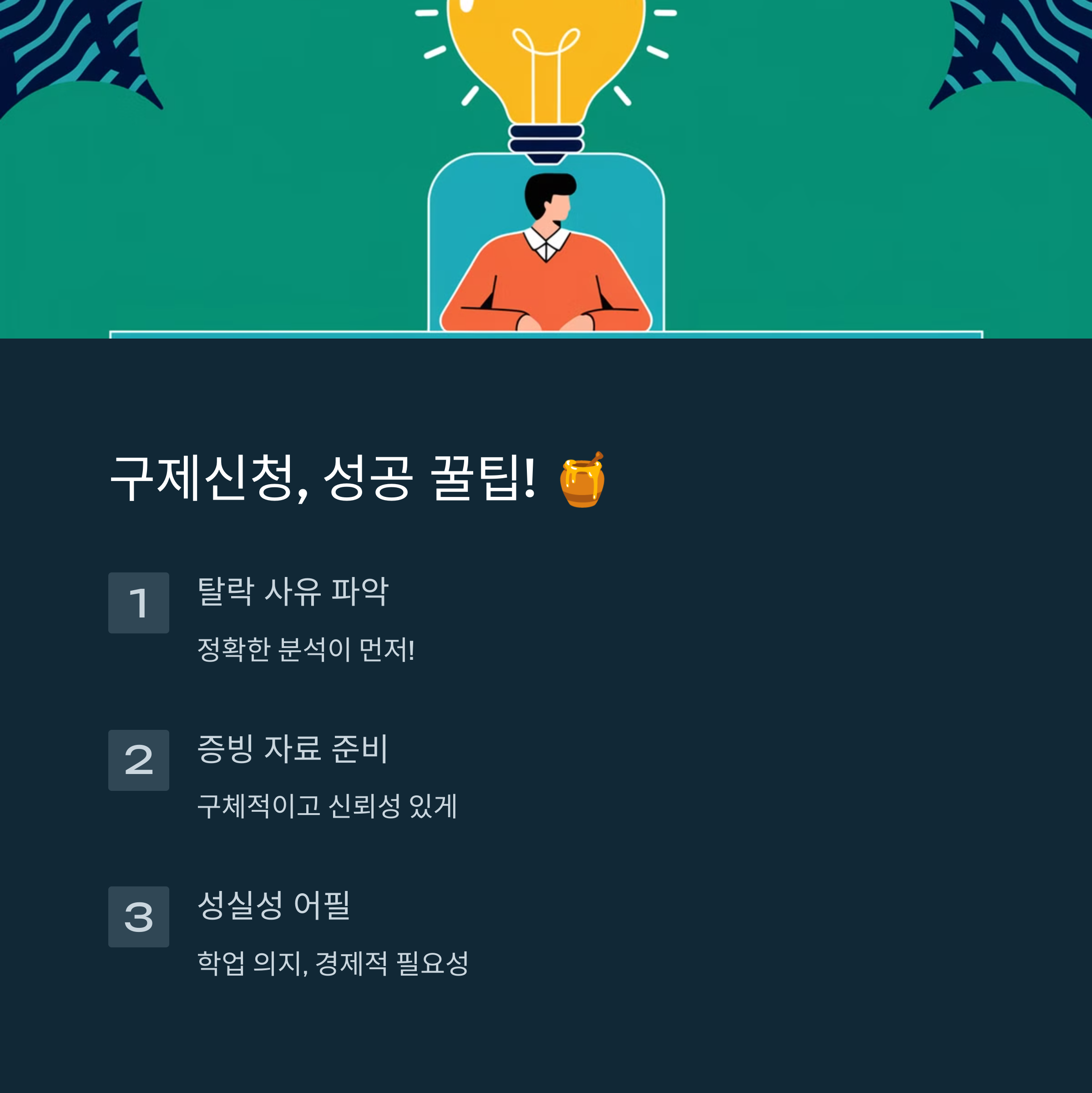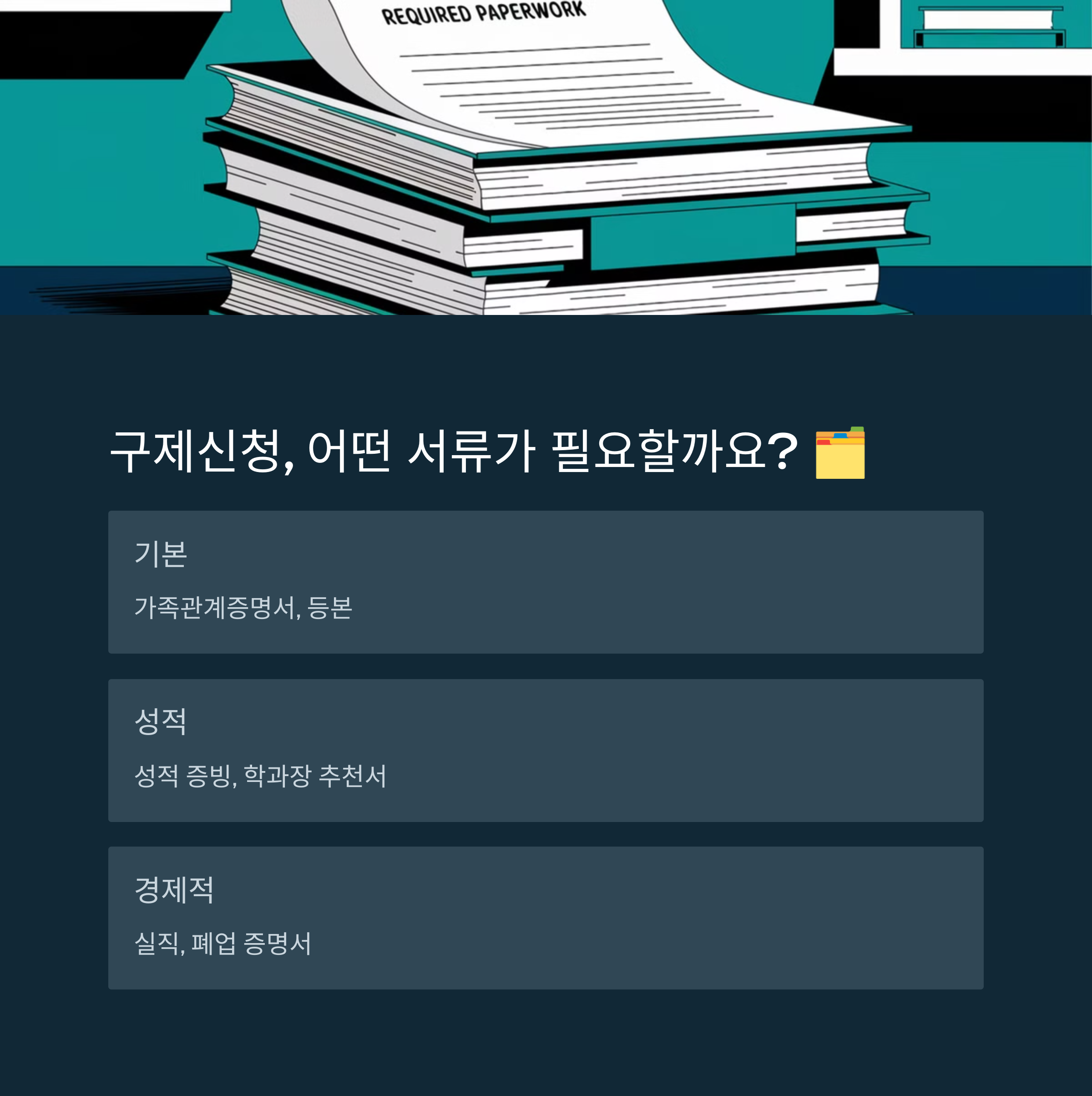 하지만 걱정하지 마세요! 성적이나 소득 문제라도 구제신청을 통해 다시 심사를 받을 수 있는 기회가 있어요. 🎯