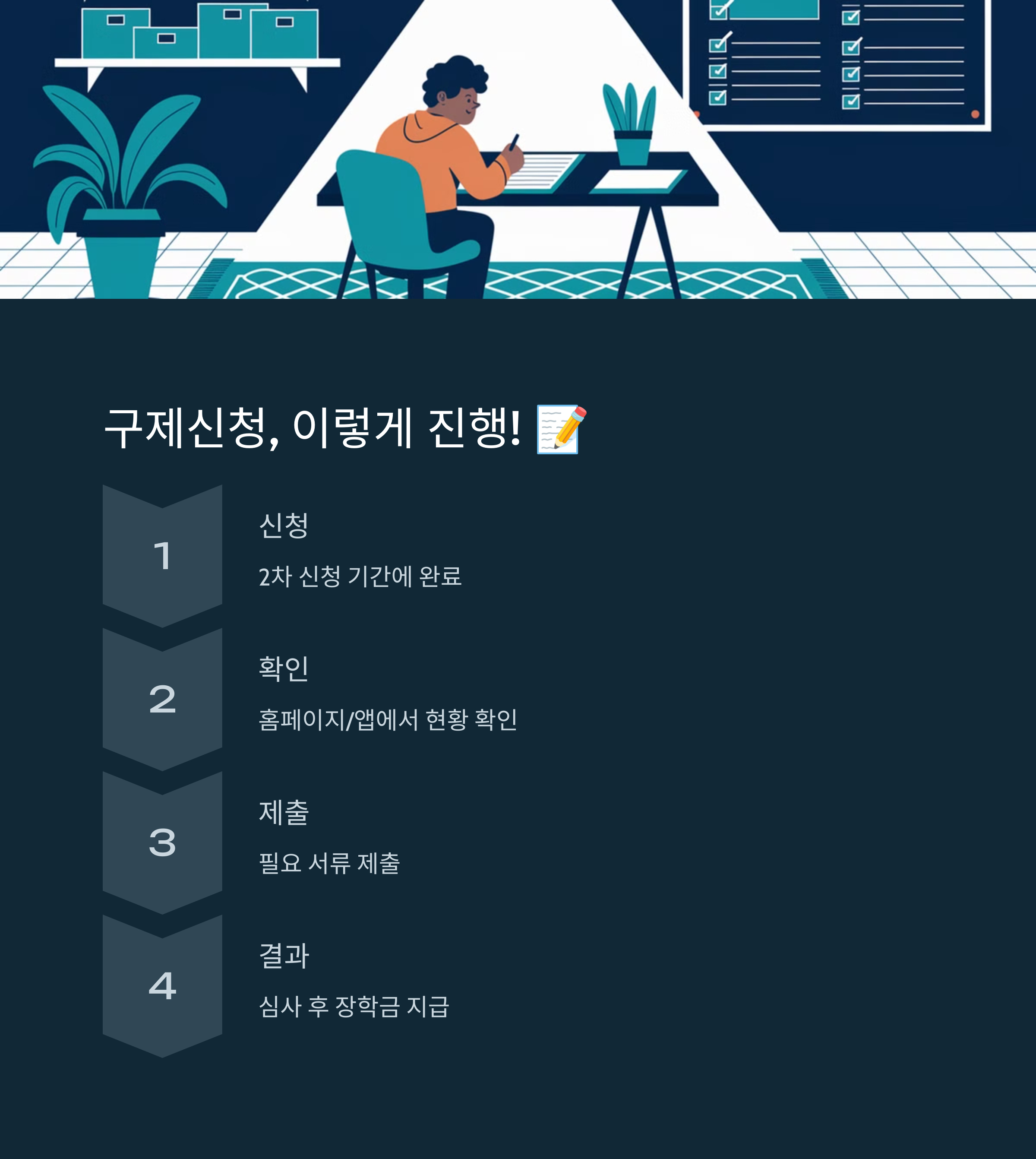 구제신청은 **한국장학재단 홈페이지**를 통해 간단하게 진행할 수 있어요. 📌