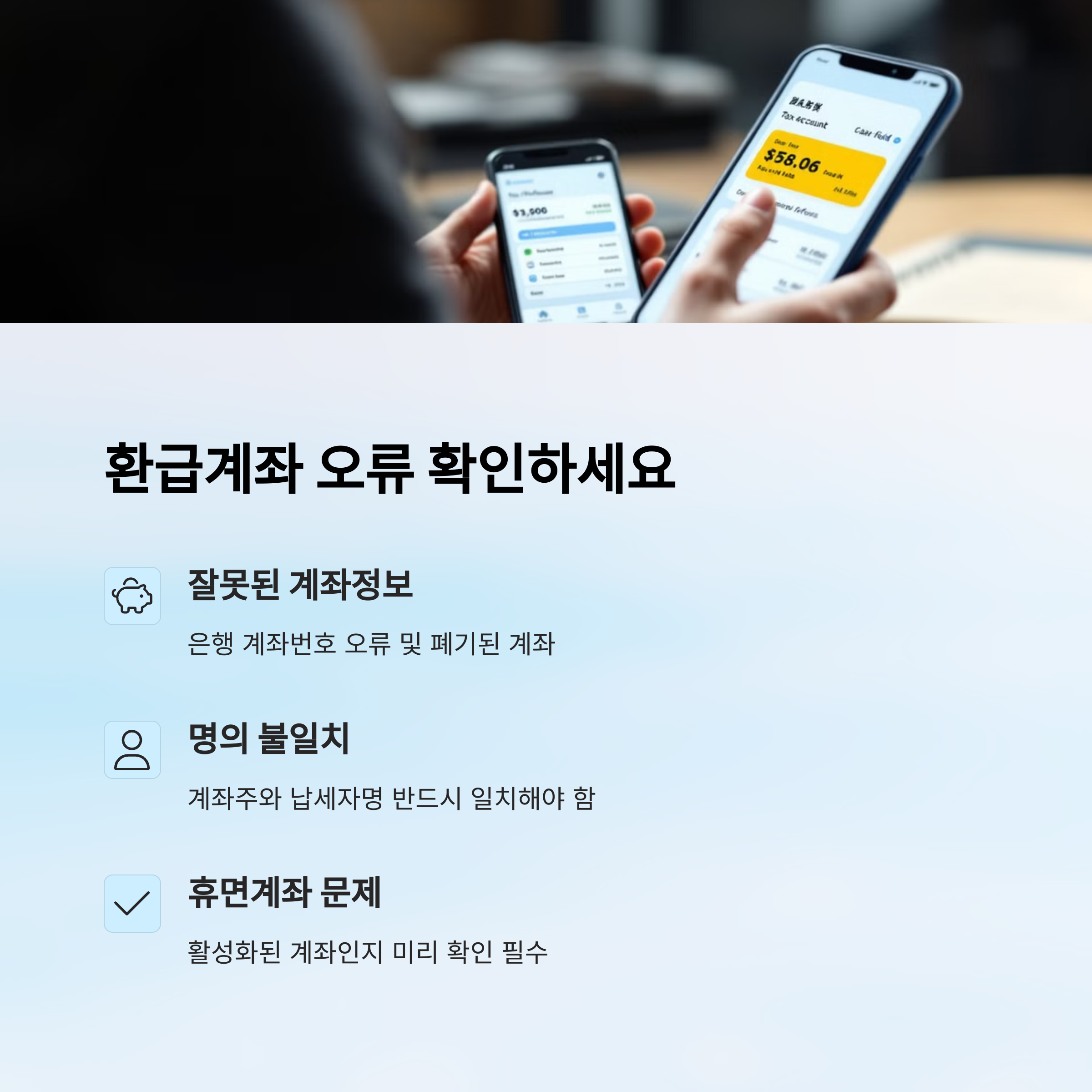 종합소득세 환급이 실패하는 가장 흔한 이유 중 하나가 바로 환급계좌 오류예요. 특히 계좌번호를 잘못 입력했거나, 이미 해지된 계좌를 등록한 경우가 많아요. 이럴 경우 국세청은 정상적으로 입금을 시도해도 실패하게 되며, 환급 처리가 지연되거나 아예 반려될 수 있어요.