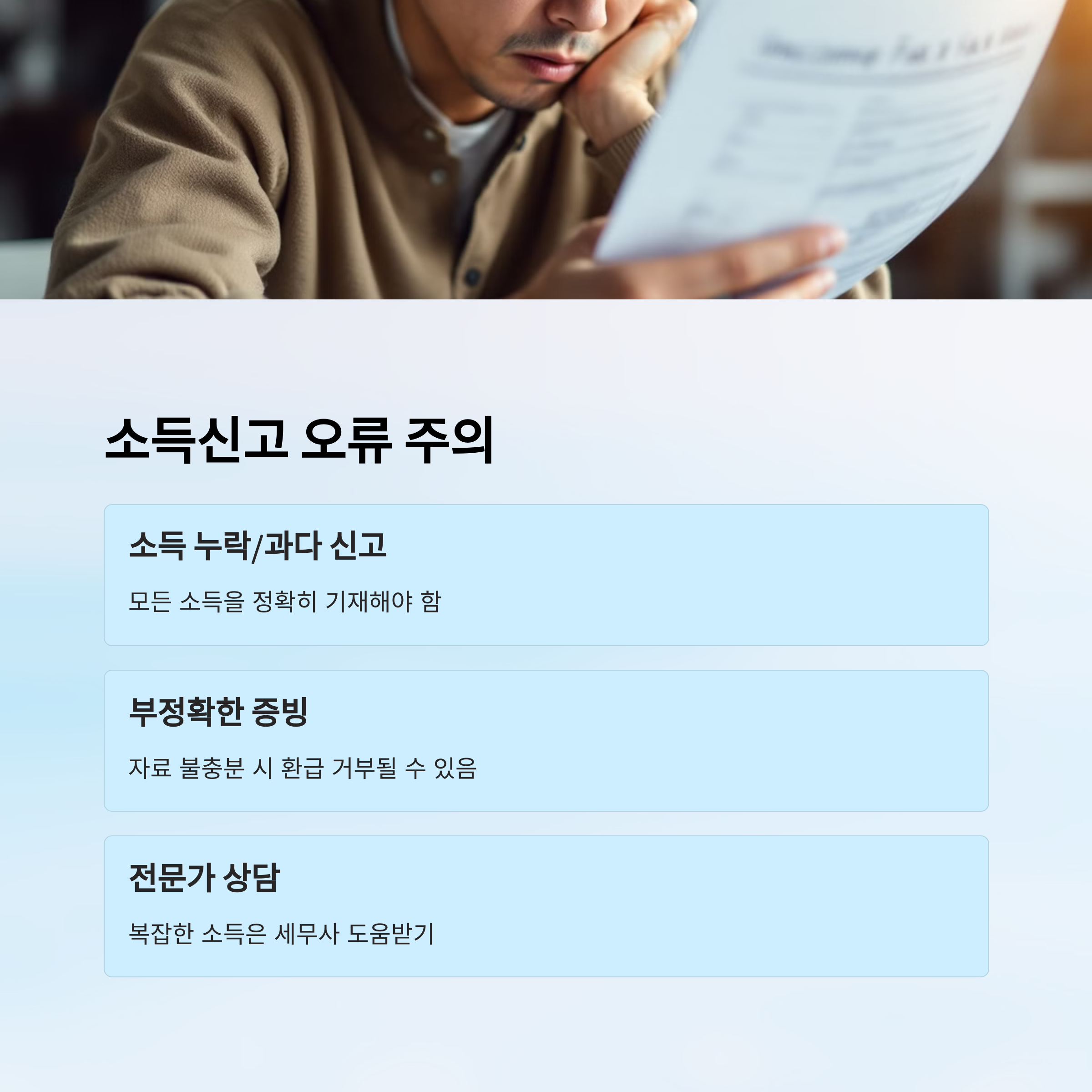 예를 들어, 사업소득 외에 근로소득이나 기타소득이 있음에도 누락하고 신고하면 전체 소득이 실제보다 적게 잡히게 돼요. 그럼 당연히 환급액도 왜곡되고, 나중에 정산과정에서 오류로 처리될 수밖에 없어요.
