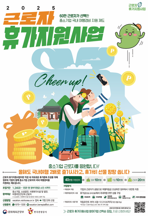 이 사업은 특히 중소기업 근로자들을 대상으로 하며, 여행을 통해 근로자들의 삶의 질을 높이고 지역 관광을 활성화하는 것을 목표로 하고 있습니다.