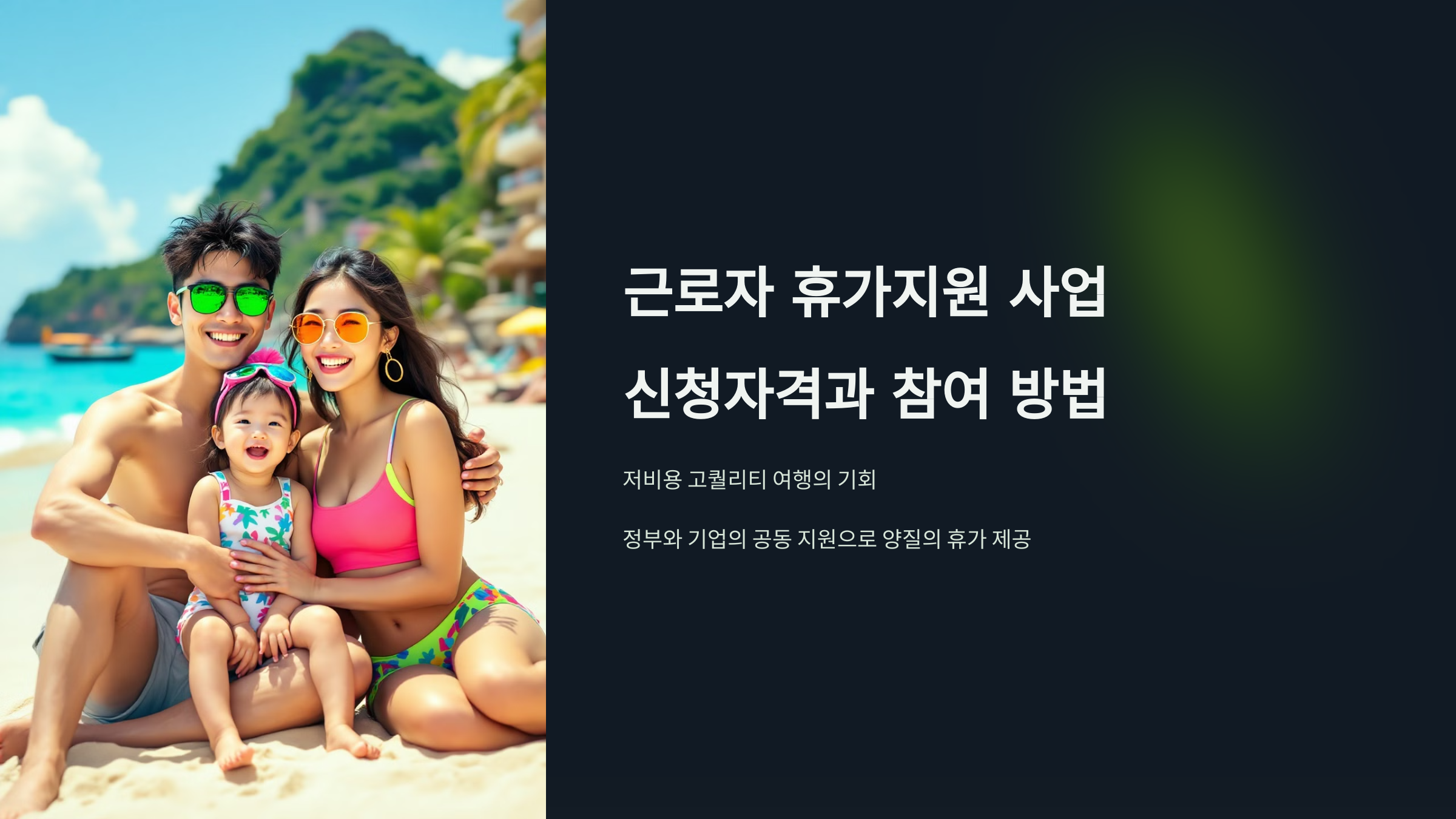 "직장인의 로망, 저비용 고퀄리티 여행이 가능하다고요?" 근로자 휴가지원 사업은 적은 비용으로 근로자와 가족들에게 멋진 여행 기회를 제공합니다. 제가 작년에 직접 신청해서 가족과 함께 제주도를 다녀왔는데요, 정말 만족스러웠습니다. 이번 글에서는 근로자 휴가지원 사업의 신청 자격과 참여 방법을 초보자도 이해하기 쉽게 정리해 드립니다.