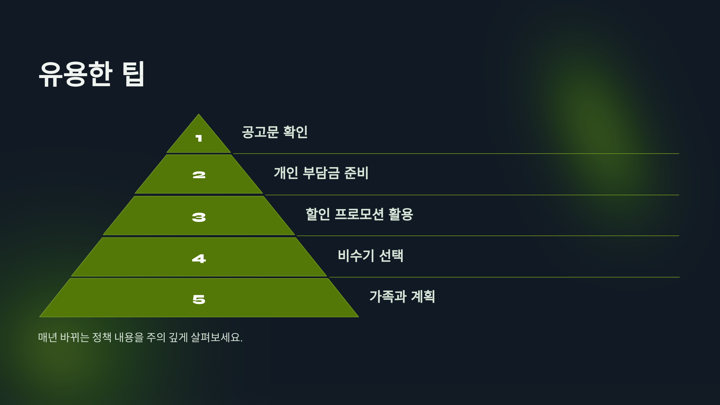 8. 매년 바뀌는 정책 내용을 주의 깊게 살펴보는 것도 중요합니다.