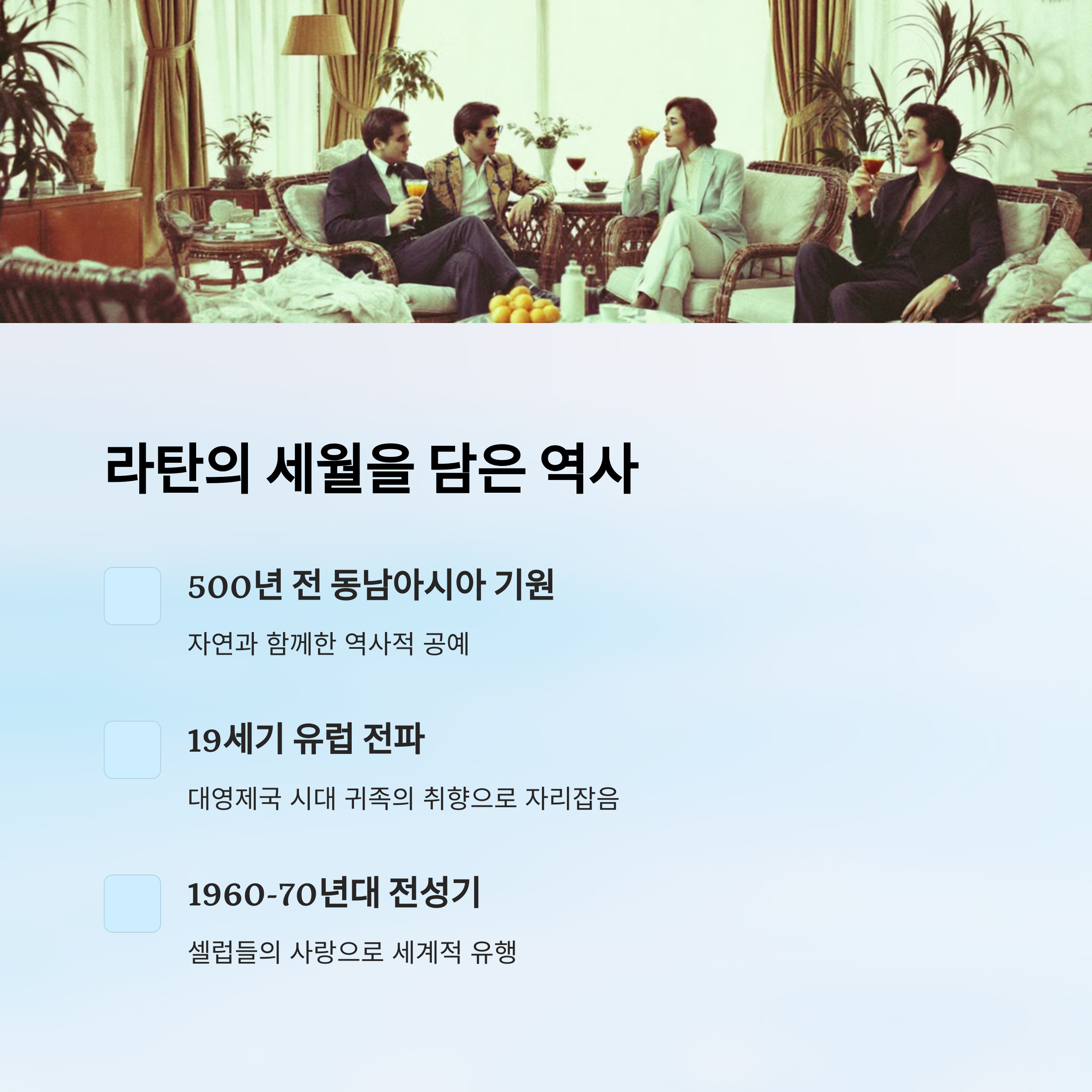 고대 이집트와 로마 시대에도 라탄과 비슷한 소재가 발견되는데요, 이 시기 사람들은 가볍고 통기성이 좋은 이 소재를 실용적인 가구 재료로 애용했답니다. 유럽에서는 17세기부터 식민지를 통해 라탄이 알려지기 시작했고, 19세기에는 본격적으로 라탄 가구가 인기를 끌었어요. 특히 빅토리아 시대에는 우아하고 가벼운 디자인 덕분에 고급 가정용품으로 각광받았죠.