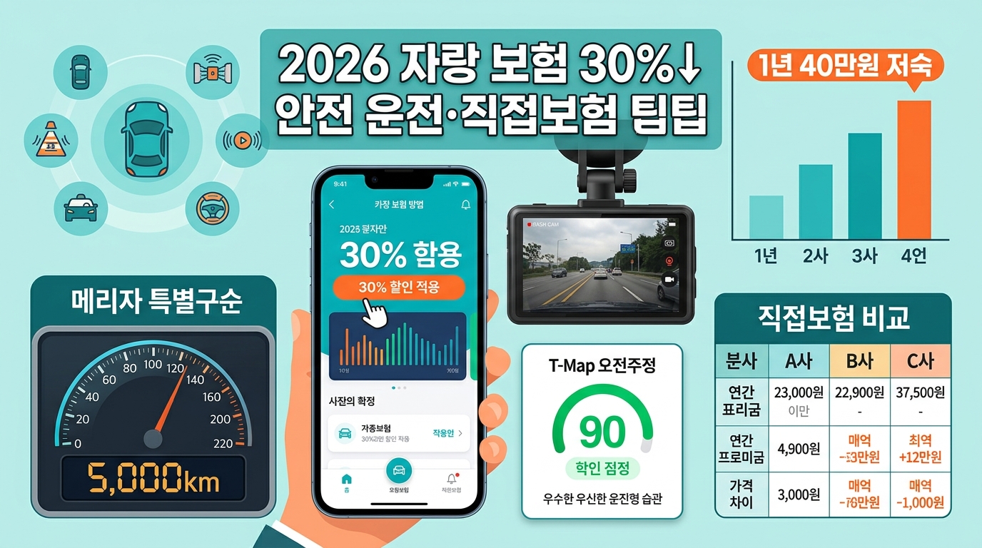 2026년 현재, 보험사들은 인공지능(AI)과 빅데이터를 활용해 운전자의 습관을 분석하는 '개인 맞춤형 상품'을 쏟아내고 있습니다. 단순히 주행거리가 짧다고 할인해주는 시대를 넘어, 이제는 어떻게 운전하느냐가 내 지갑을 지켜주는 핵심이 되었죠. 오늘 제가 직접 발품 팔아 정리한 보험료 다이어트 비법, 지금 바로 시작해볼까요? 🚗