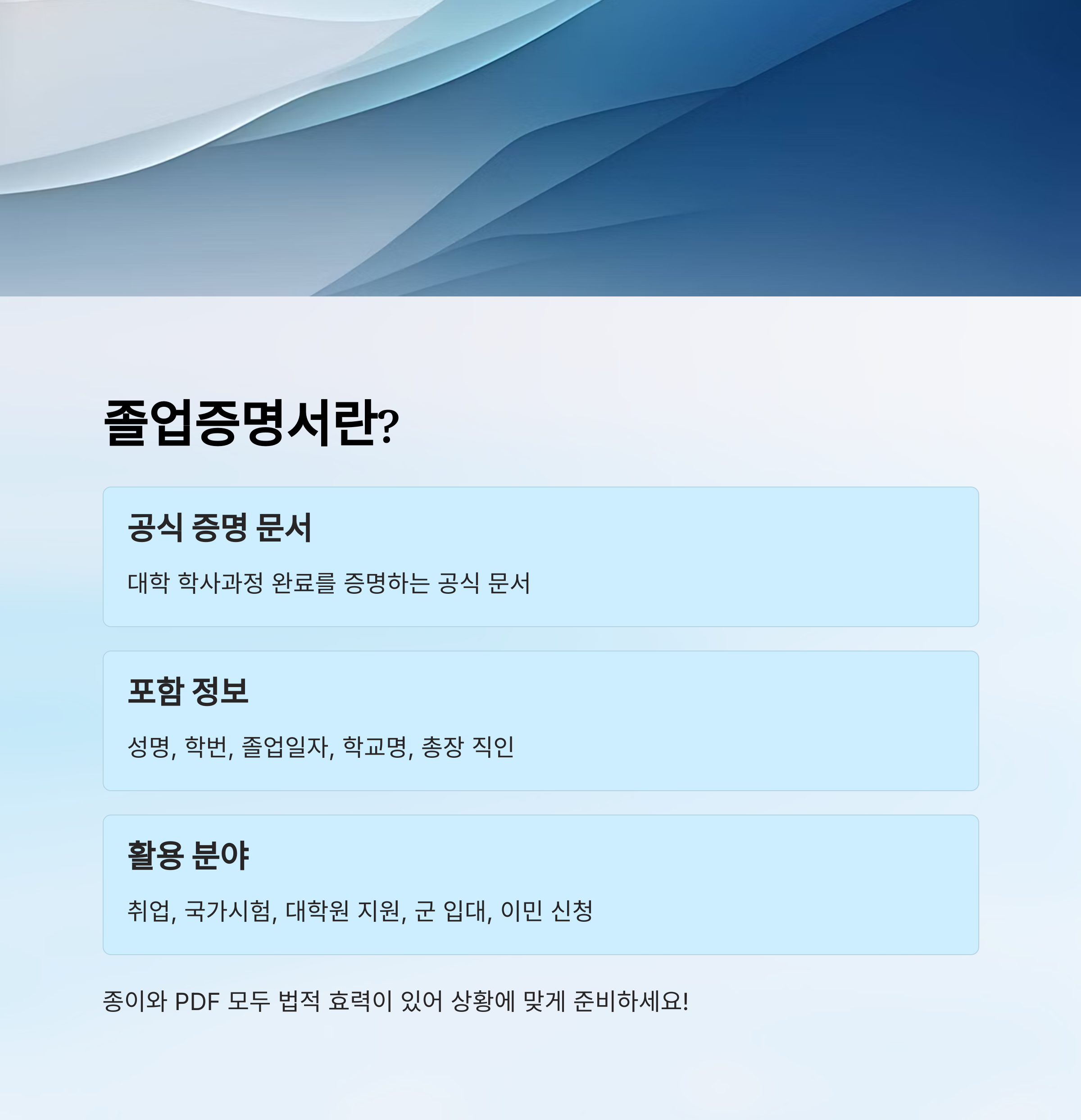 해당 서류는 취업 준비 시 제출 필수인 경우도 많고, 국가시험 접수나 대학원 지원, 군 입대, 이민 신청에도 자주 쓰여요. 특히 2025년부터는 디지털 행정 강화로 전자 졸업증명서가 일반화되고 있어요.