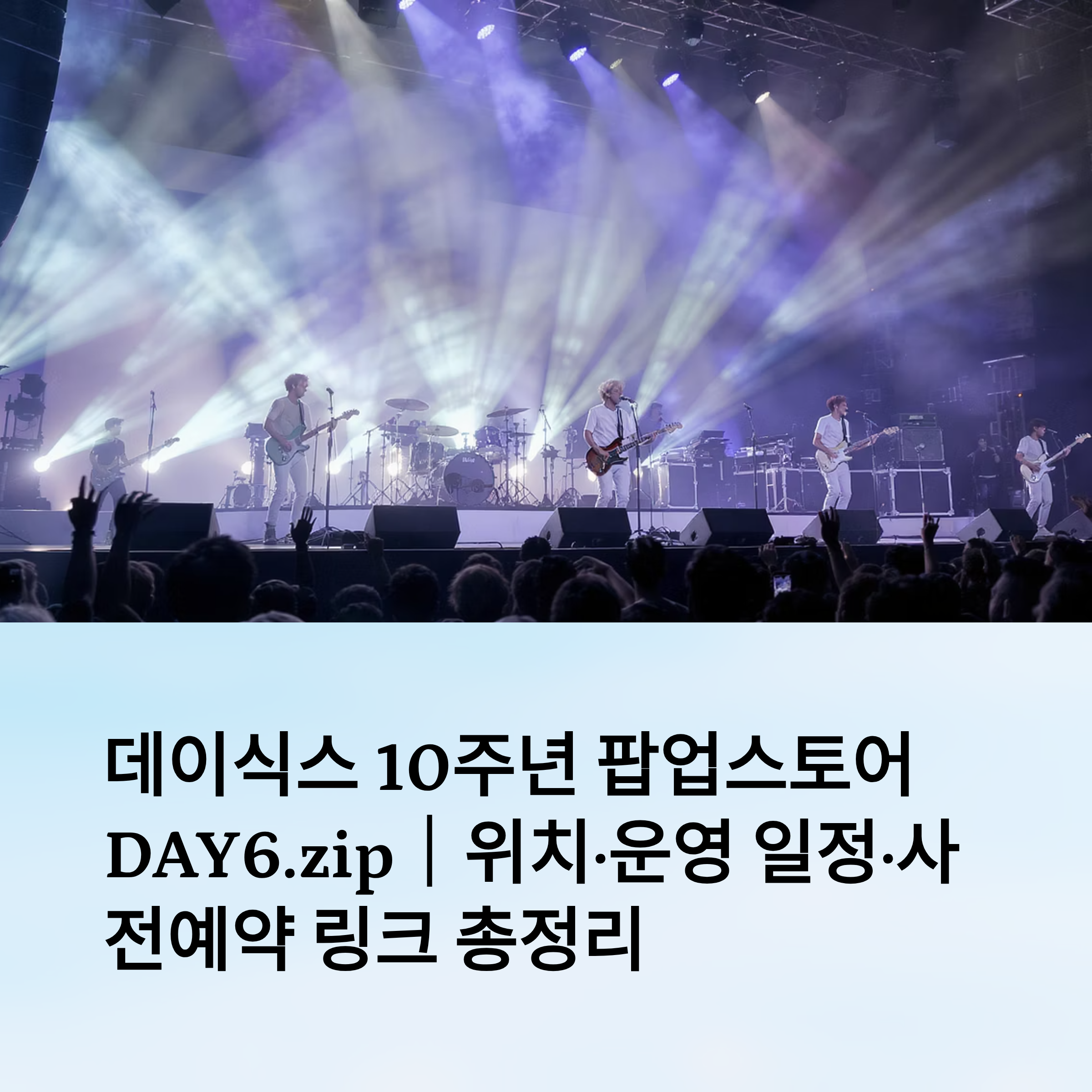 이제 아래에서는 DAY6 10주년 팝업스토어의 역사적 의미부터 시작해서 운영 일정, 예약 방법, 굿즈 정보까지 하나씩 정리해 드릴게요. 팬이라면 절대 놓치면 안 될 알짜 정보를 담았으니 끝까지 함께해 주세요! 🎸