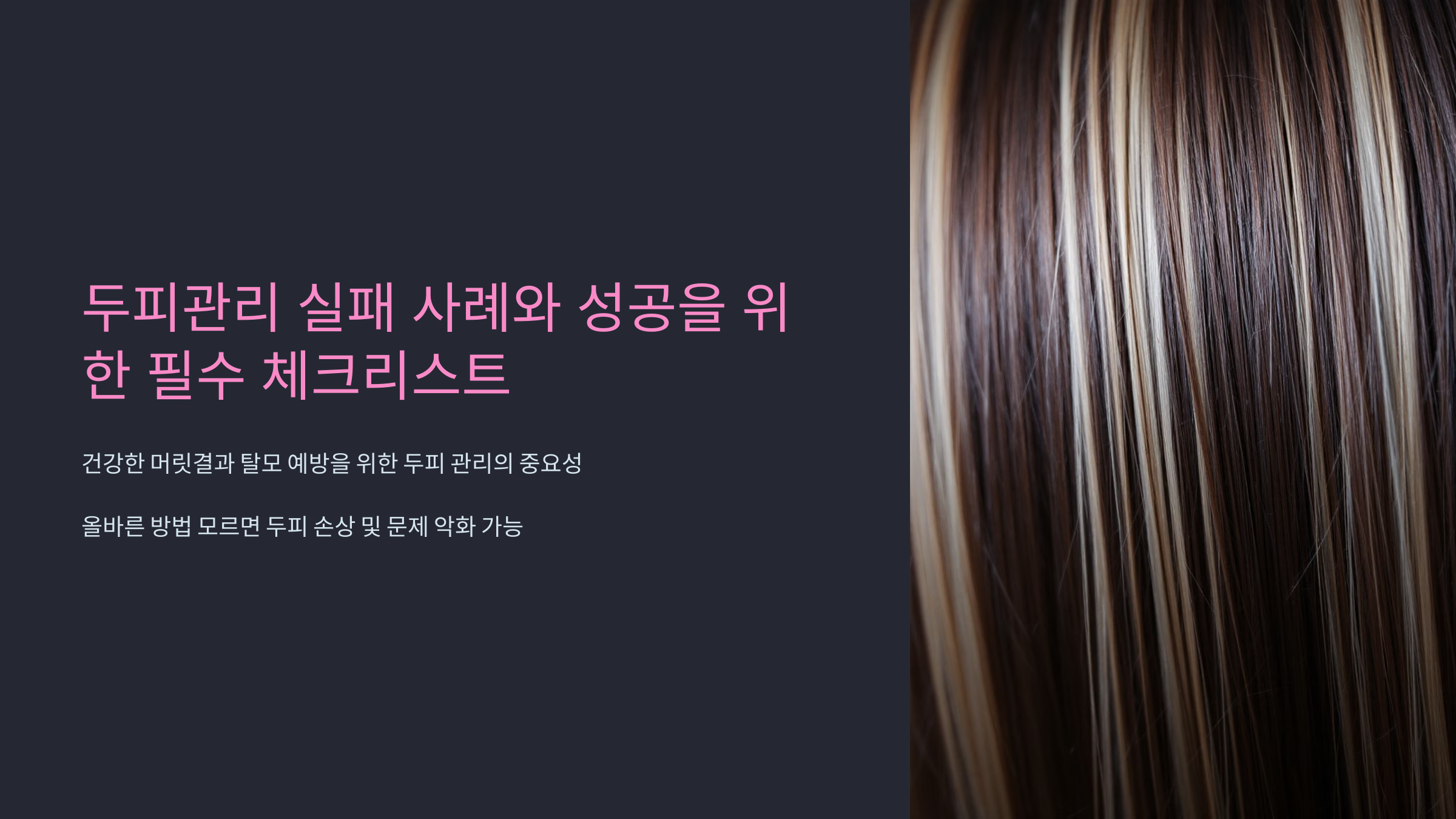 건강한 머릿결과 탈모 예방을 위해 두피 관리가 중요하다는 것은 누구나 알고 있습니다. 하지만 올바른 방법을 모른 채 잘못된 습관을 반복하면 오히려 두피를 손상시키고 문제가 악화될 수 있습니다. 이번 글에서는 두피 관리 실패 사례와 이를 예방하고 성공적인 관리로 이어가기 위한 필수 체크리스트를 소개합니다.