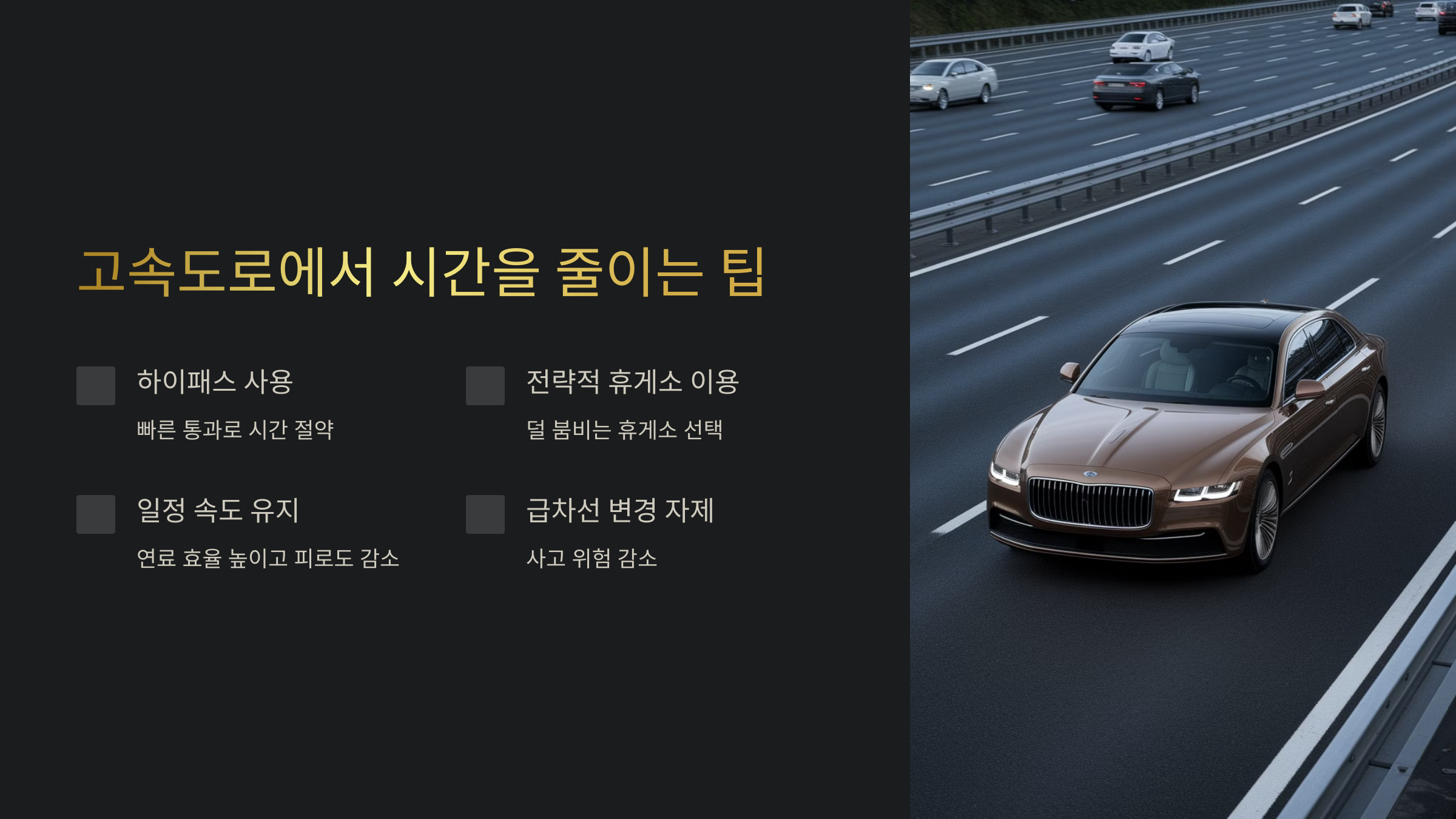 명절은 가족과 친지들이 한자리에 모이는 특별한 시간이지만, 고속도로 위의 긴 정체는 많은 사람들에게 큰 스트레스가 되곤 해요. 귀성길이 단순히 이동만을 위한 것이 아니라 편안하고 효율적으로 다녀올 수 있는 여정이 된다면 더 좋겠죠?