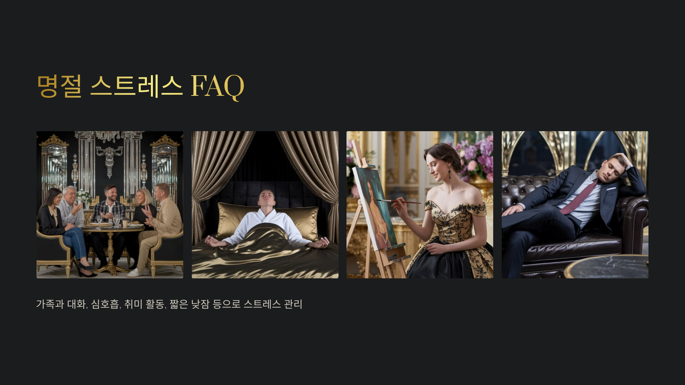A3. 명절 스트레스에서 오는 불면증은 휴식을 충분히 취하고, 스트레스를 줄이는 활동으로 완화할 수 있어요. 필요하다면 전문가 상담을 고려해 보세요.