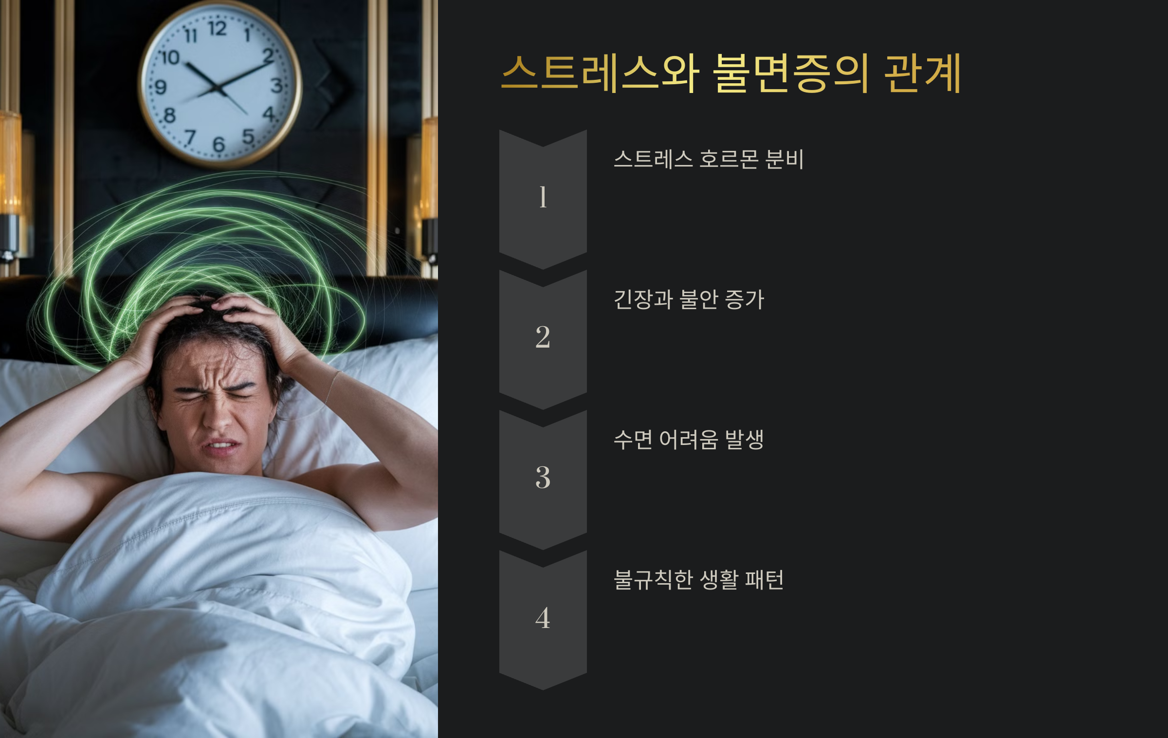 명절 스트레스와 불면증은 깊은 연관이 있어요. 스트레스를 받으면 우리 몸은 '코티솔'이라는 스트레스 호르몬을 분비해요. 이 호르몬은 긴장을 높이고, 마음을 불안하게 만들어 밤에도 쉽게 잠들지 못하게 하죠.
