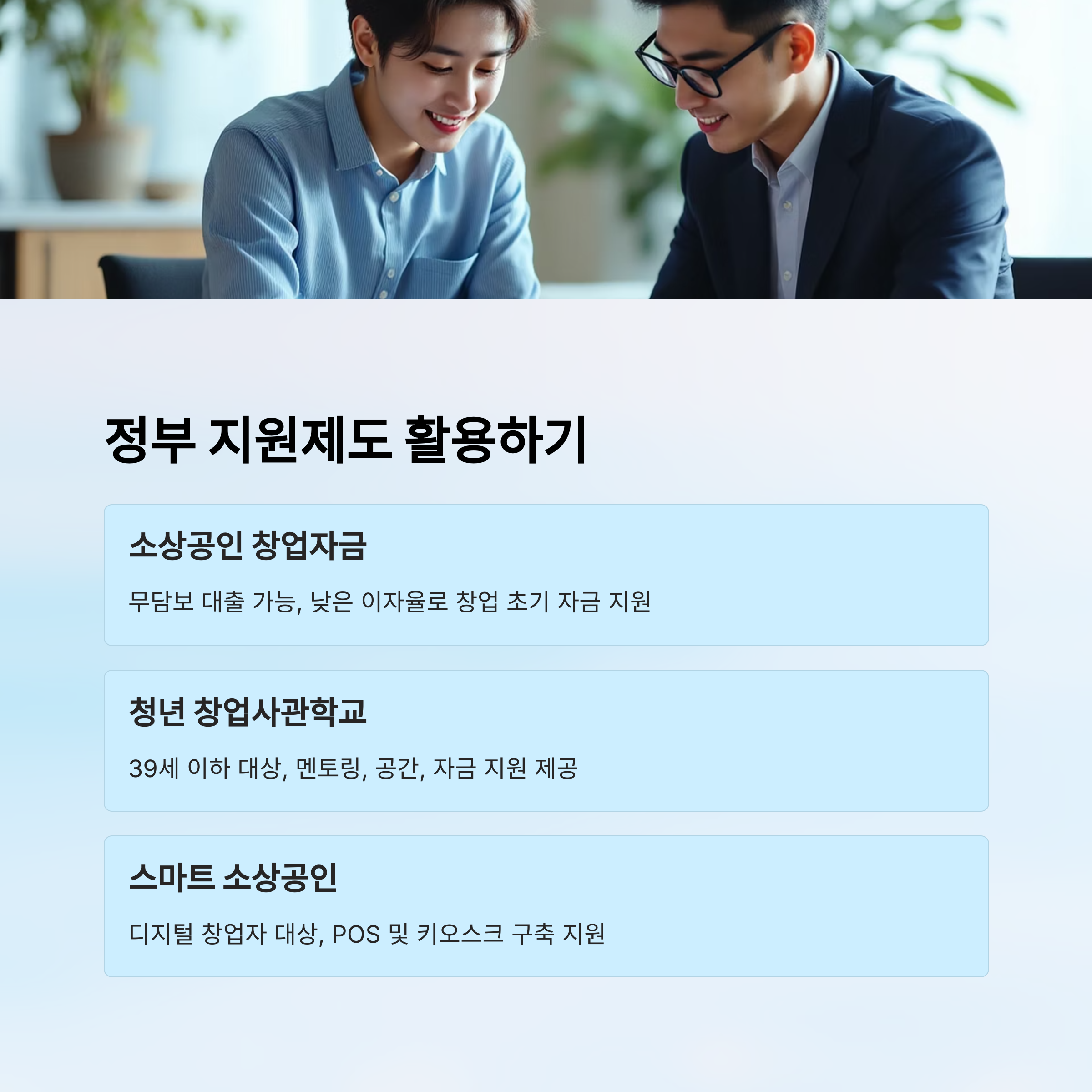 또한 ‘청년 창업사관학교’, ‘여성 창업패키지’, ‘스마트 소상공인 지원 사업’ 같은 맞춤형 지원 프로그램도 있어요. 각자의 상황에 맞는 제도를 활용하면 리스크를 줄일 수 있어요.