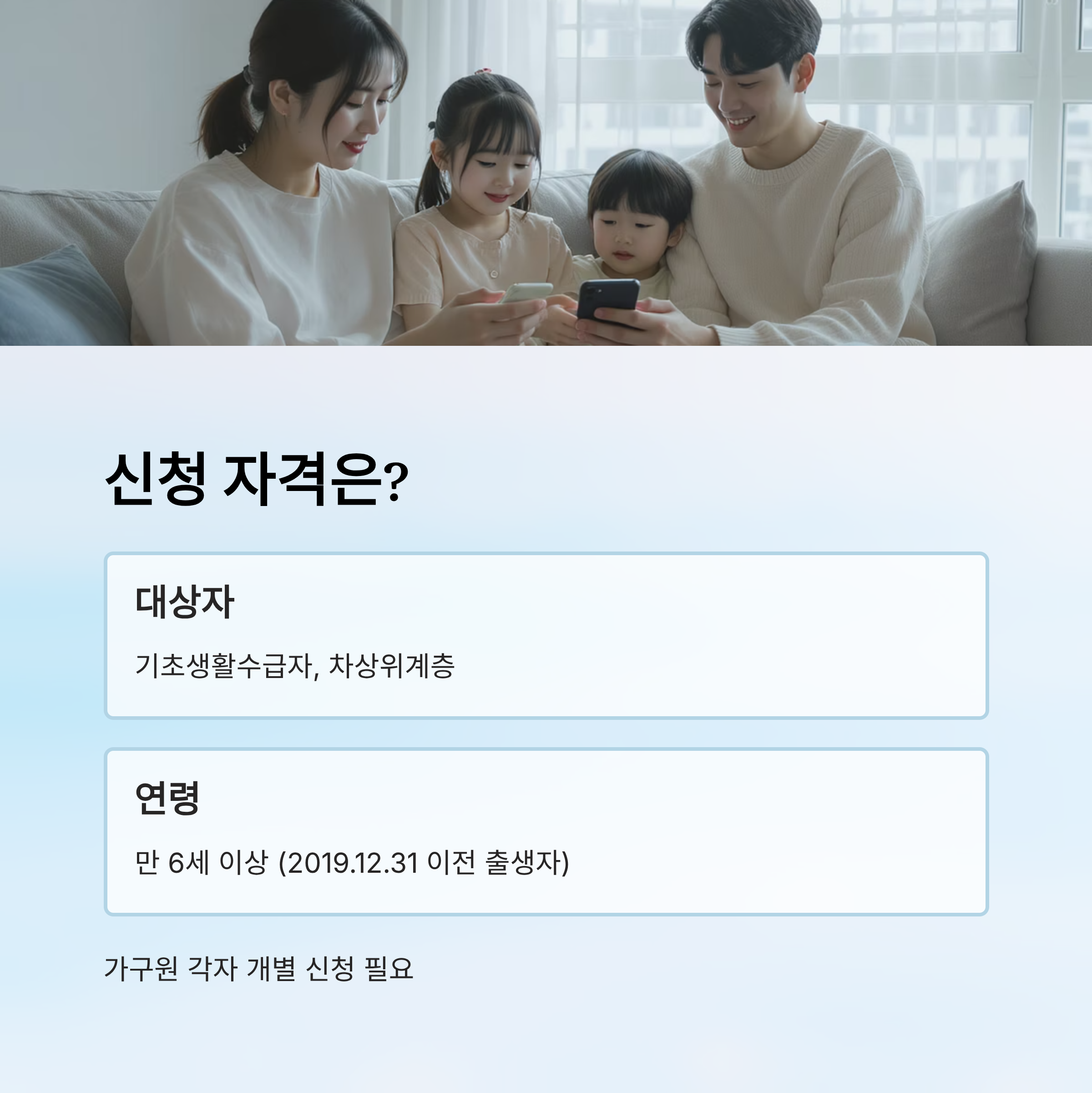 문화누리카드는 대한민국 국민 중 일정 조건을 충족하는 사람들에게만 제공돼요. 2025년 기준 신청 자격은 기초생활수급자, 차상위계층에 해당되는 만 6세 이상 국민이에요. 2019년 12월 31일 이전 출생자라면 신청 가능하다는 뜻이죠.