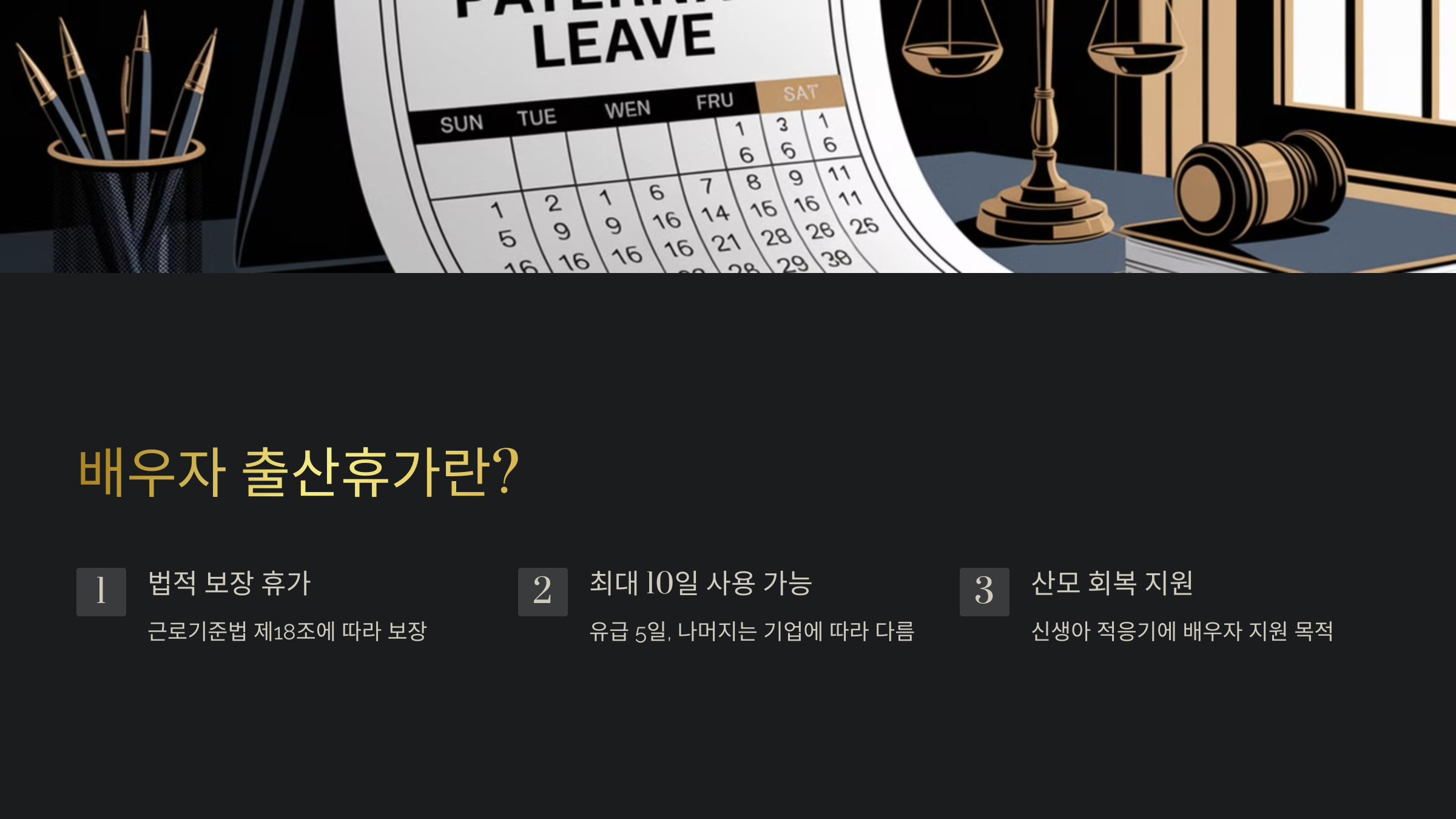 배우자 출산휴가는 근로자가 배우자의 출산을 지원하고 가족과 함께 시간을 보낼 수 있도록 법적으로 보장된 휴가예요. 출산 후 초기에는 산모가 회복하고 신생아가 안정적으로 적응하는 중요한 시기라, 이를 돕기 위해 남편도 일정 기간 휴가를 사용할 수 있도록 한 것이죠. 💕