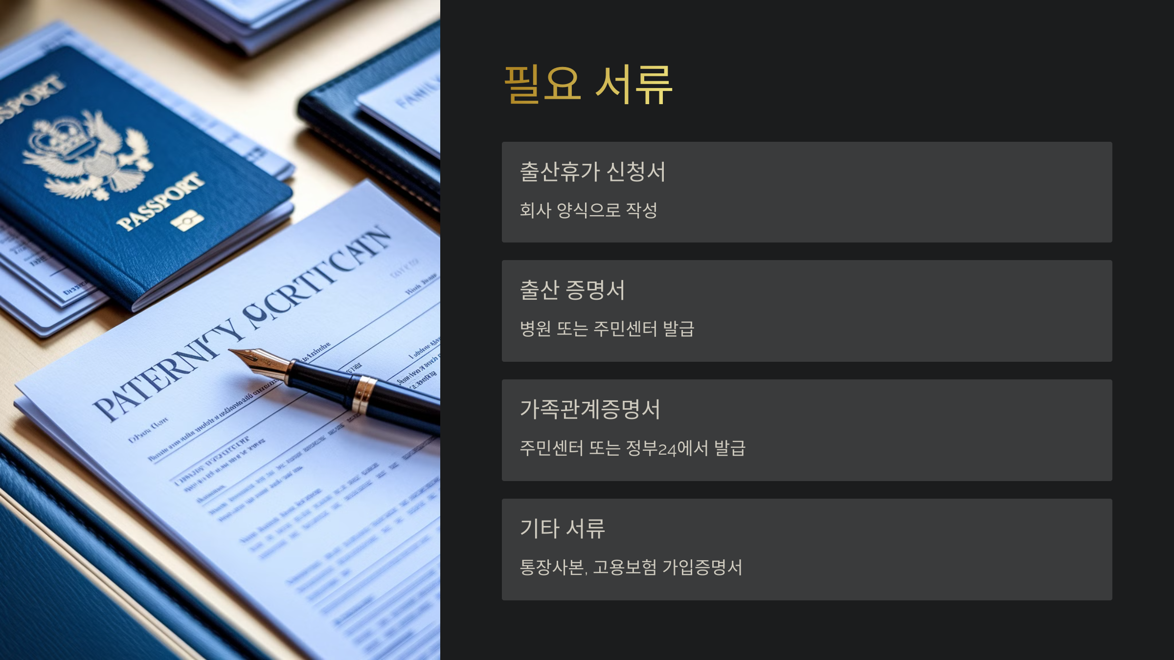 배우자 출산휴가를 신청하려면 몇 가지 필수 서류를 준비해야 해요. 회사마다 추가로 요구하는 서류가 있을 수도 있지만, 기본적으로 필요한 서류는 다음과 같아요. 📑