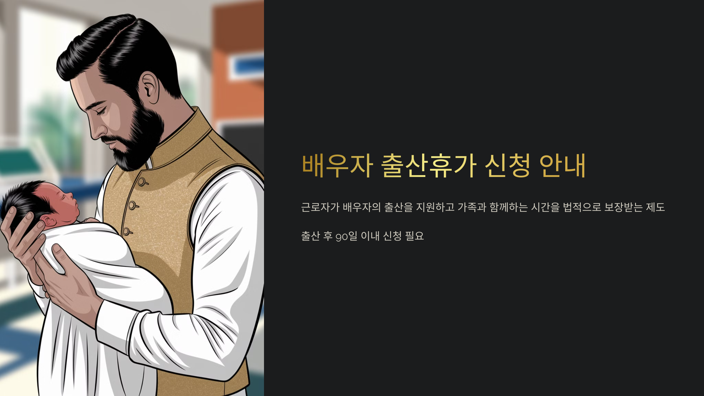 배우자 출산휴가는 출산 후 90일 이내에 신청해야 하므로, 출산 예정일을 고려해 미리 준비하는 것이 좋아요. 급여 지급을 받으려면 고용보험에서 신청해야 하므로, 반드시 절차를 확인하세요! 😊