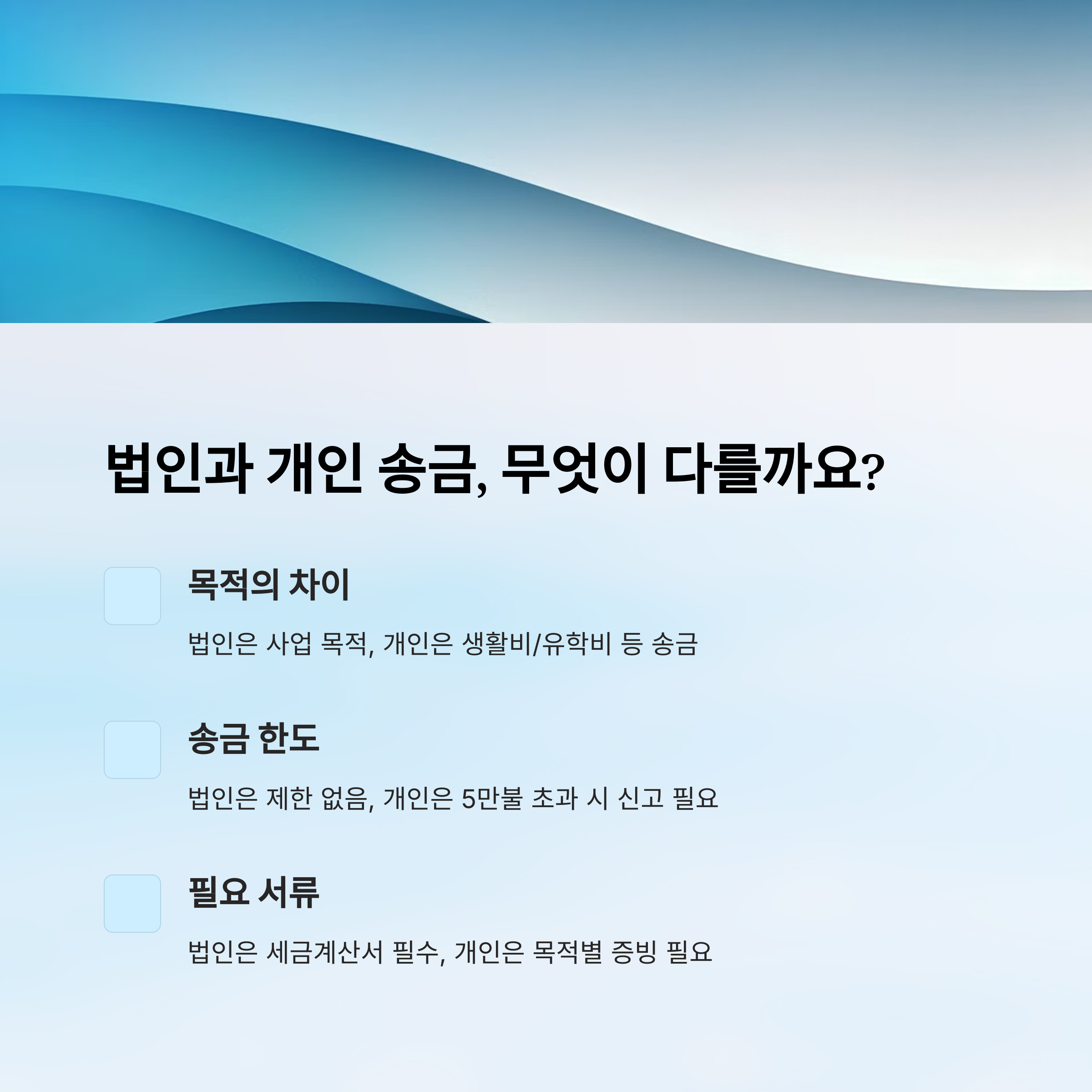 | 항목 | 개인 송금 | 법인 송금 |