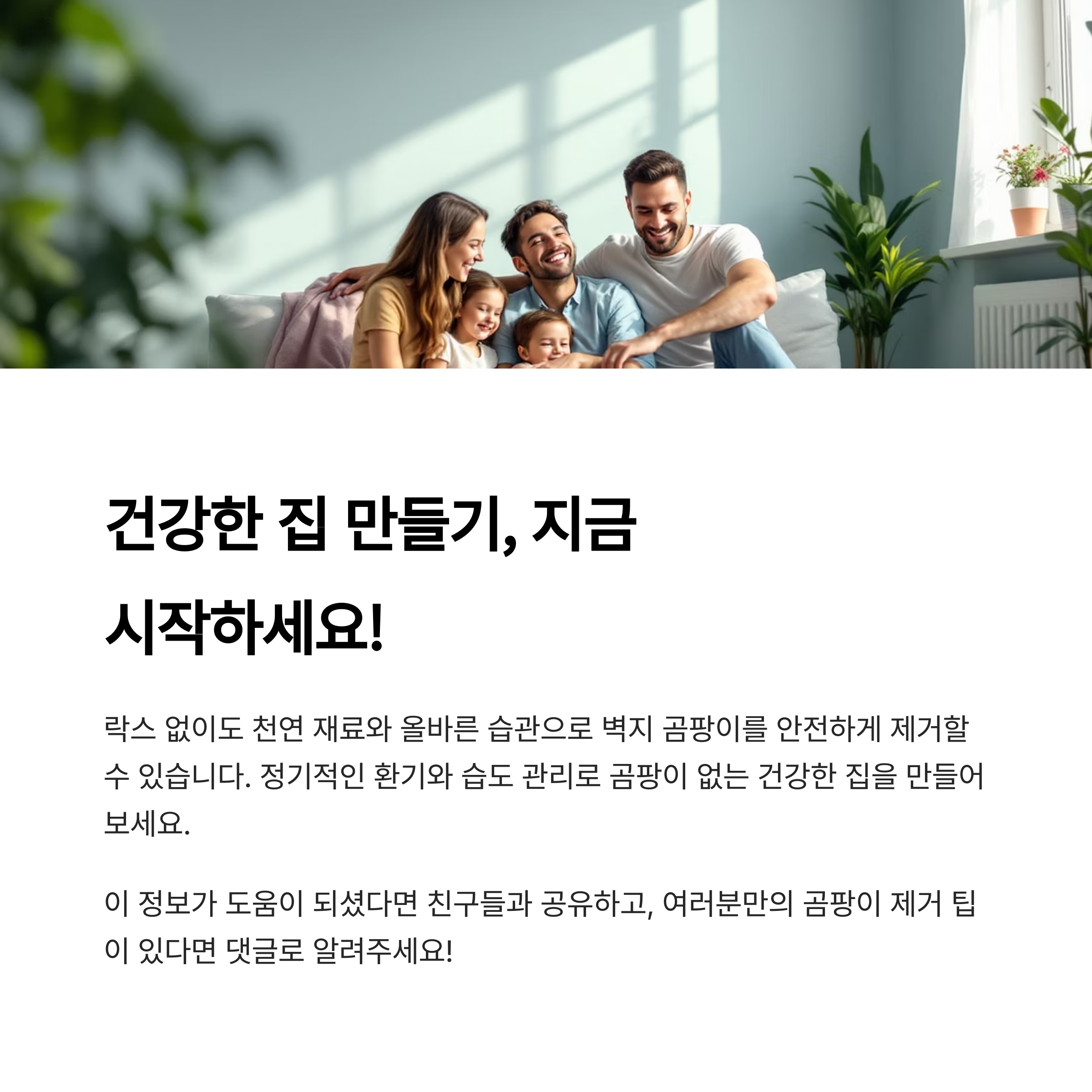 가족 모두가 안심하고 지낼 수 있는 집을 만들기 위해 곰팡이 제거는 ‘자극 없는 안전함’이 핵심이에요. 생활 속에서 자연스럽게 실천할 수 있는 방법을 익혀두면 좋겠죠? 😊