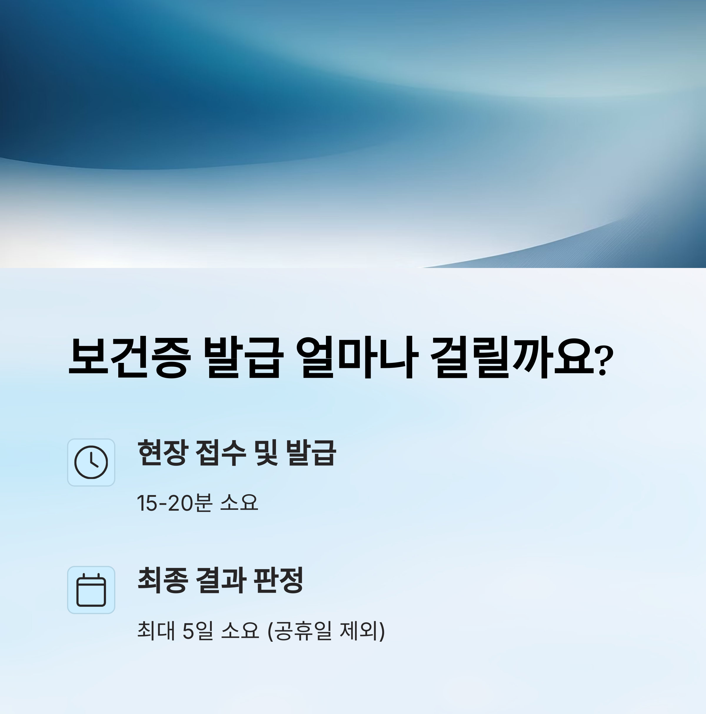 보건증 발급은 단순히 서류만 출력하는 게 아니라, 먼저 건강진단을 받아야 하기 때문에 시간이 조금 걸릴 수 있어요. 대부분의 보건소에서는 **검사 후 결과 확인까지 약 3~5일** 정도의 시간이 소요된다고 안내하고 있어요.