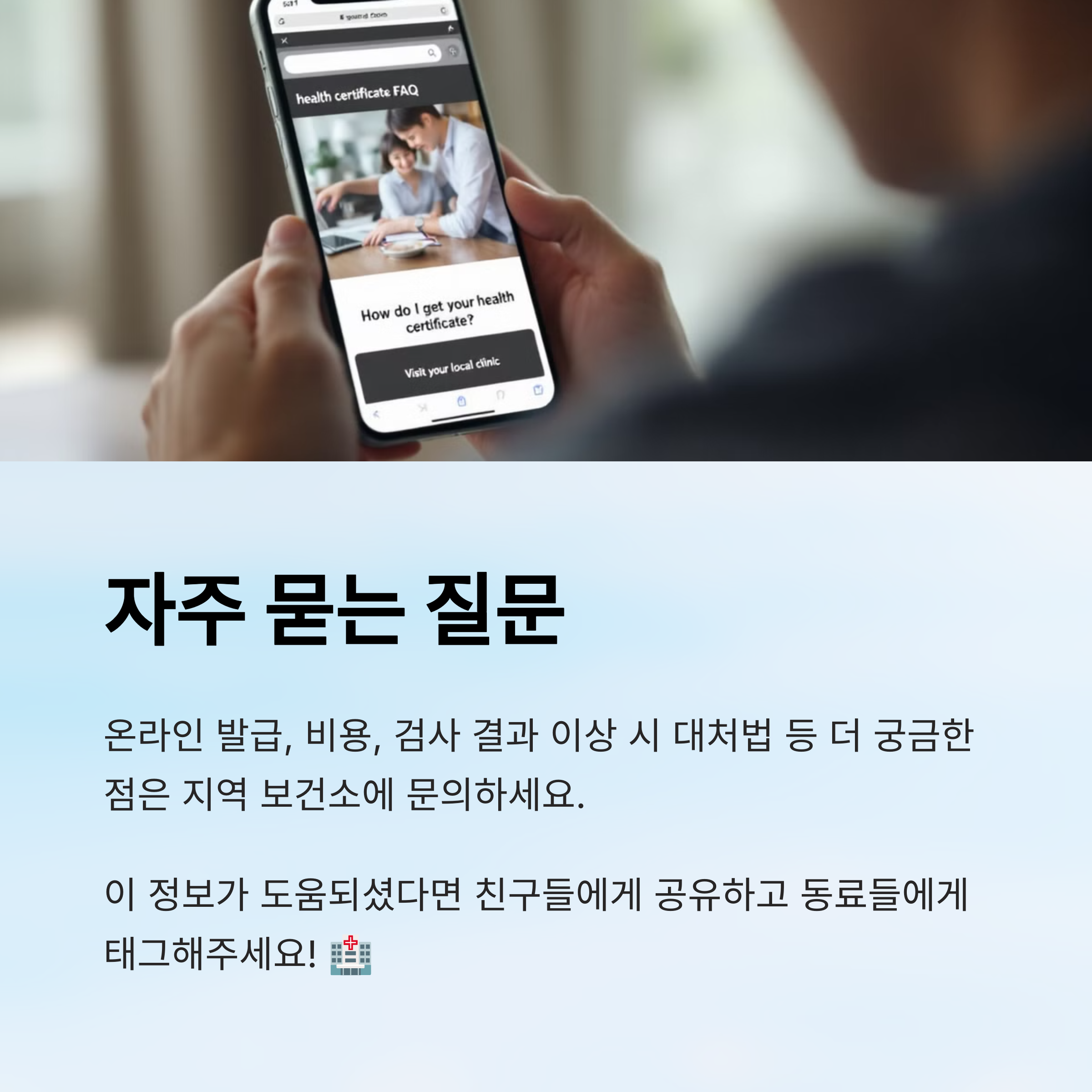 또한 민간 병원이나 지정된 건강검진기관에서도 보건증을 발급받을 수 있어요. 단, 모든 병원이 가능하진 않아요. ‘건강진단결과서 발급 가능기관’인지 꼭 사전에 확인하고 방문해야 해요. 대부분의 병원은 홈페이지나 전화 문의를 통해 바로 확인 가능해요 📞