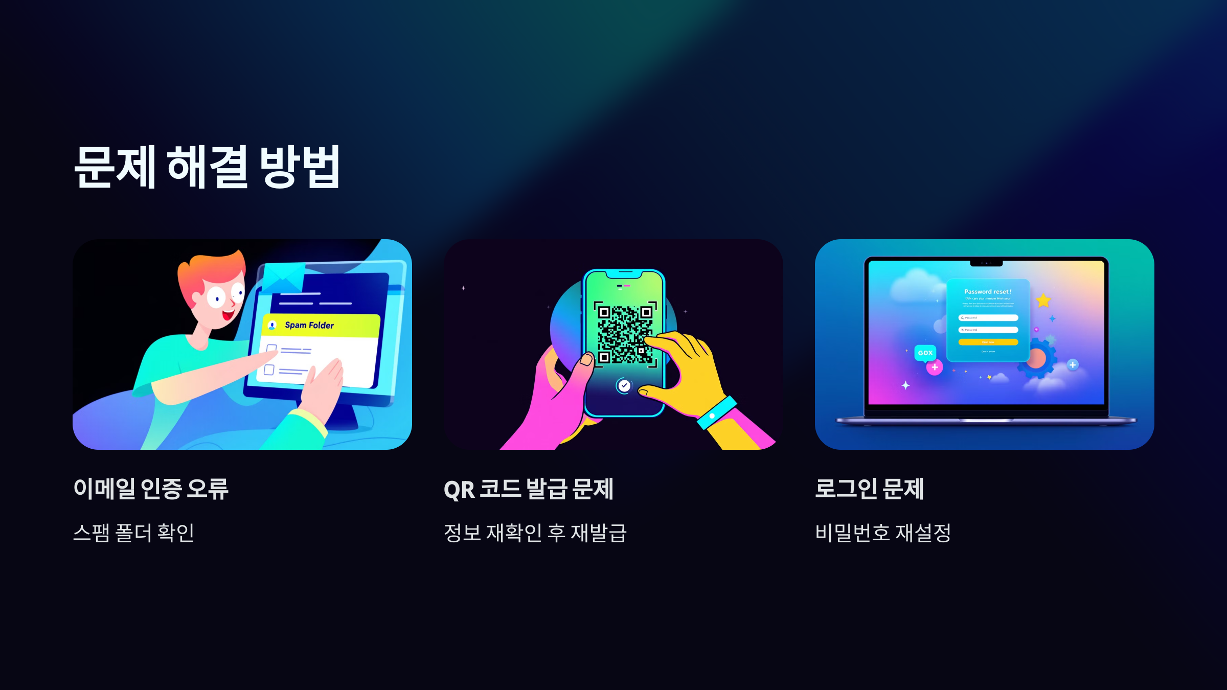 1. 이메일 인증 오류: 스팸 폴더를 확인하거나 올바른 이메일 주소를 입력했는지 확인하세요.