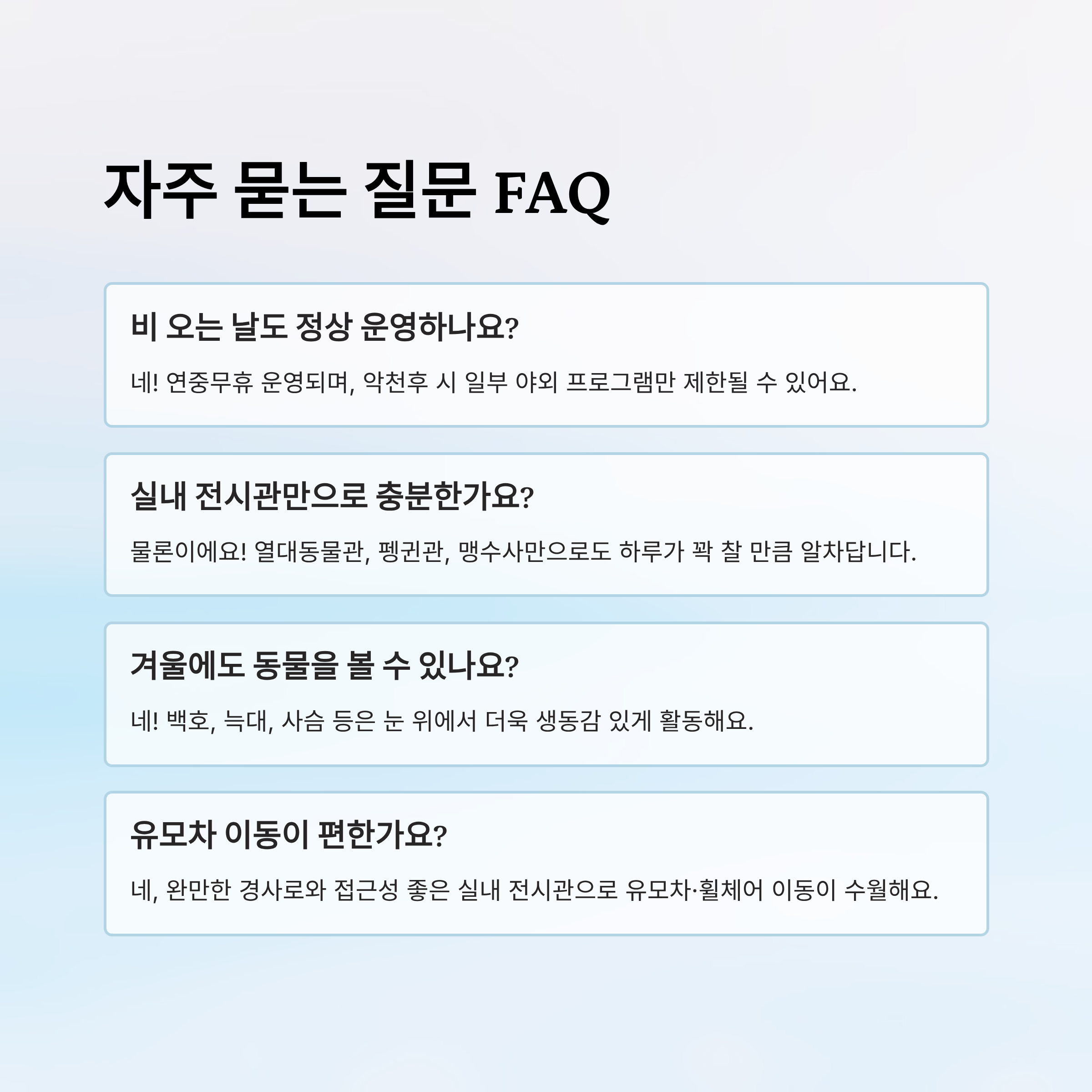 Q1. 비 오는 날에도 서울대공원 동물원은 정상 운영하나요?
