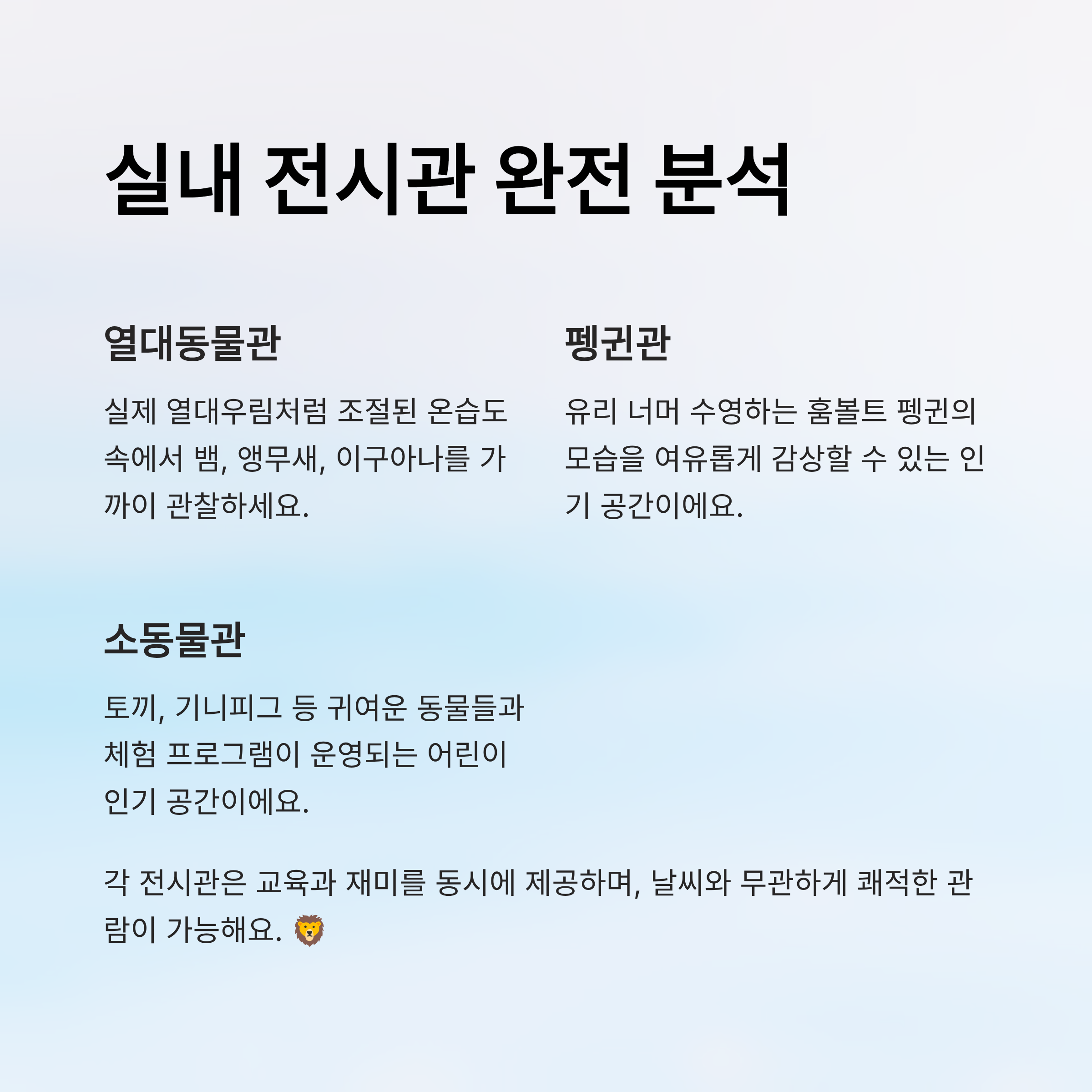 📍 서울대공원 주요 실내관 리스트