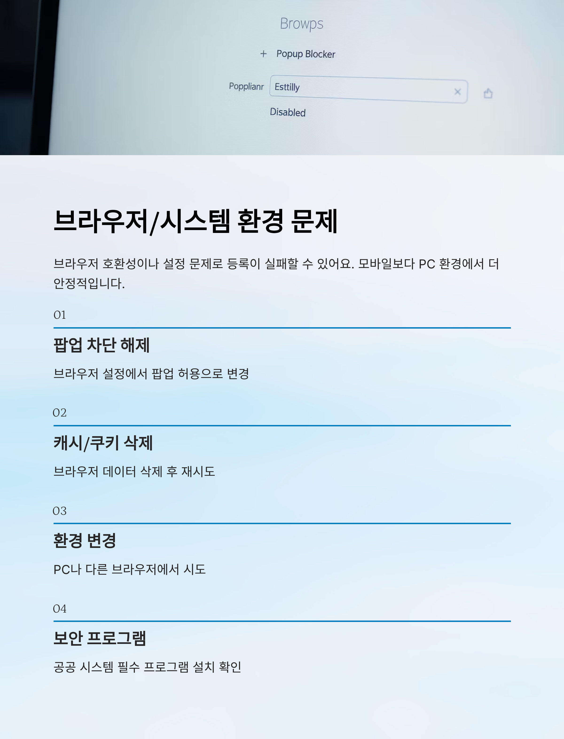 4️⃣ 브라우저 캐시·팝업 설정 점검 및 기기 변경 시도