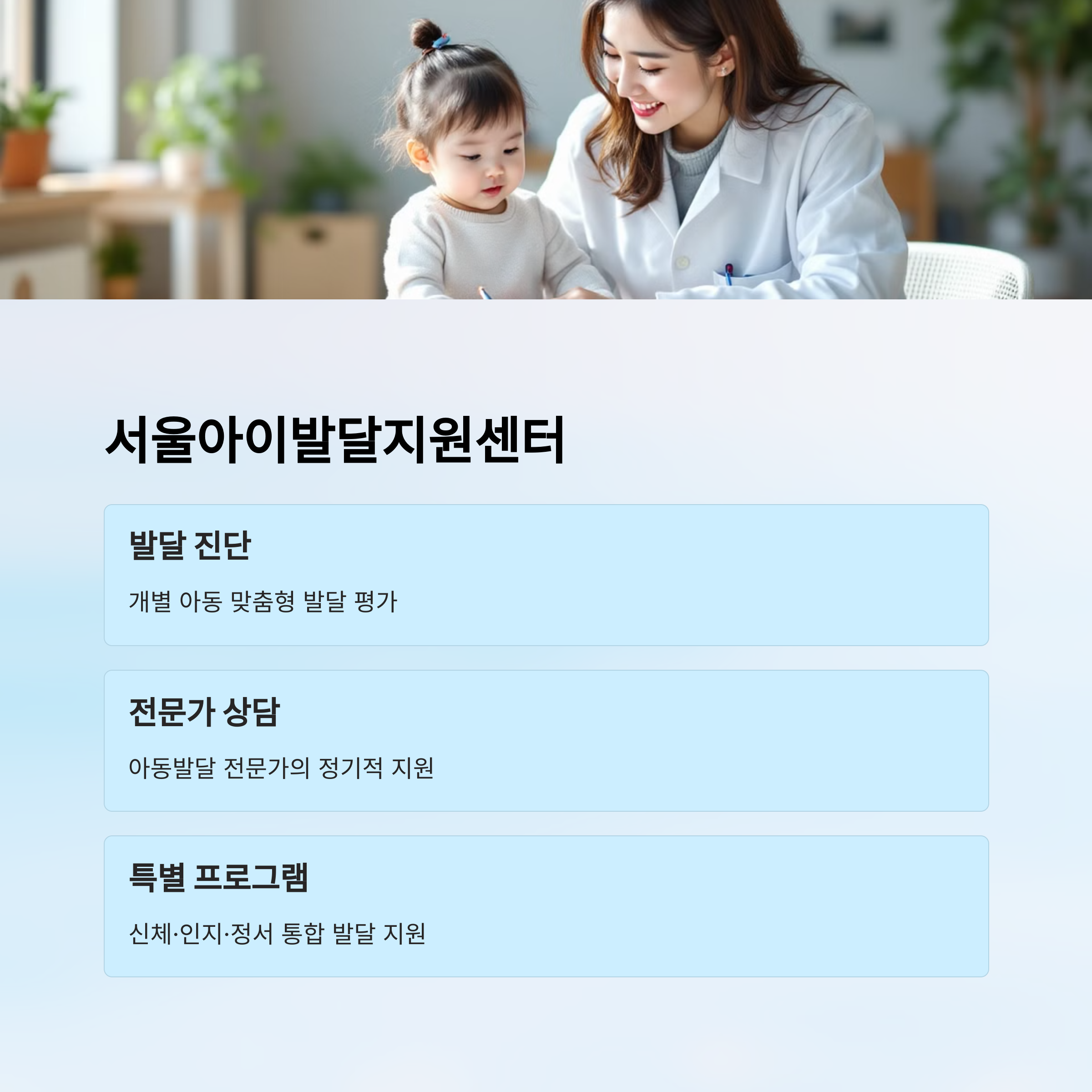 이런 불안감을 줄이기 위해 서울시는 ‘서울아이발달지원센터’를 운영하며, 발달검사와 상담을 무료로 제공하고 있어요.