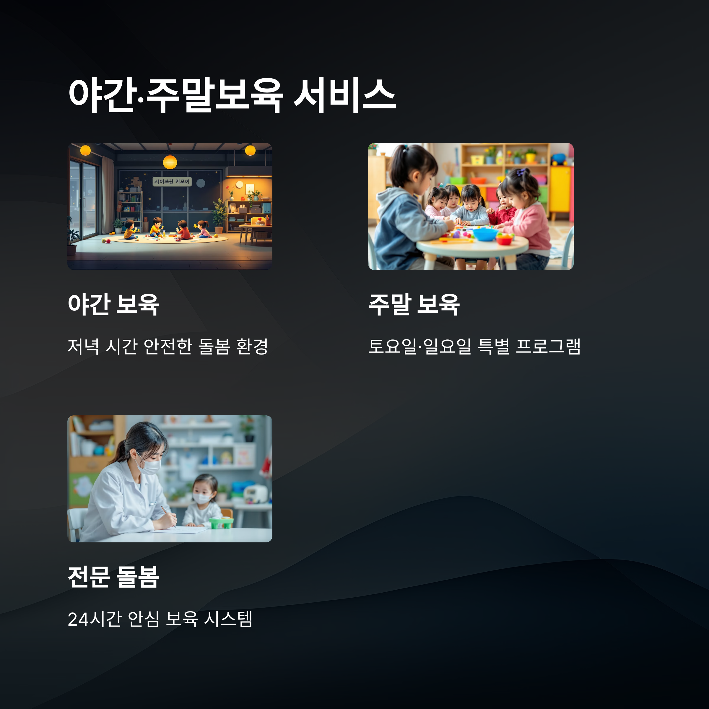 게다가 모든 야간·주말보육은 부모의 추가 비용 없이 무상으로 제공된다는 점도 큰 장점이에요. 👍