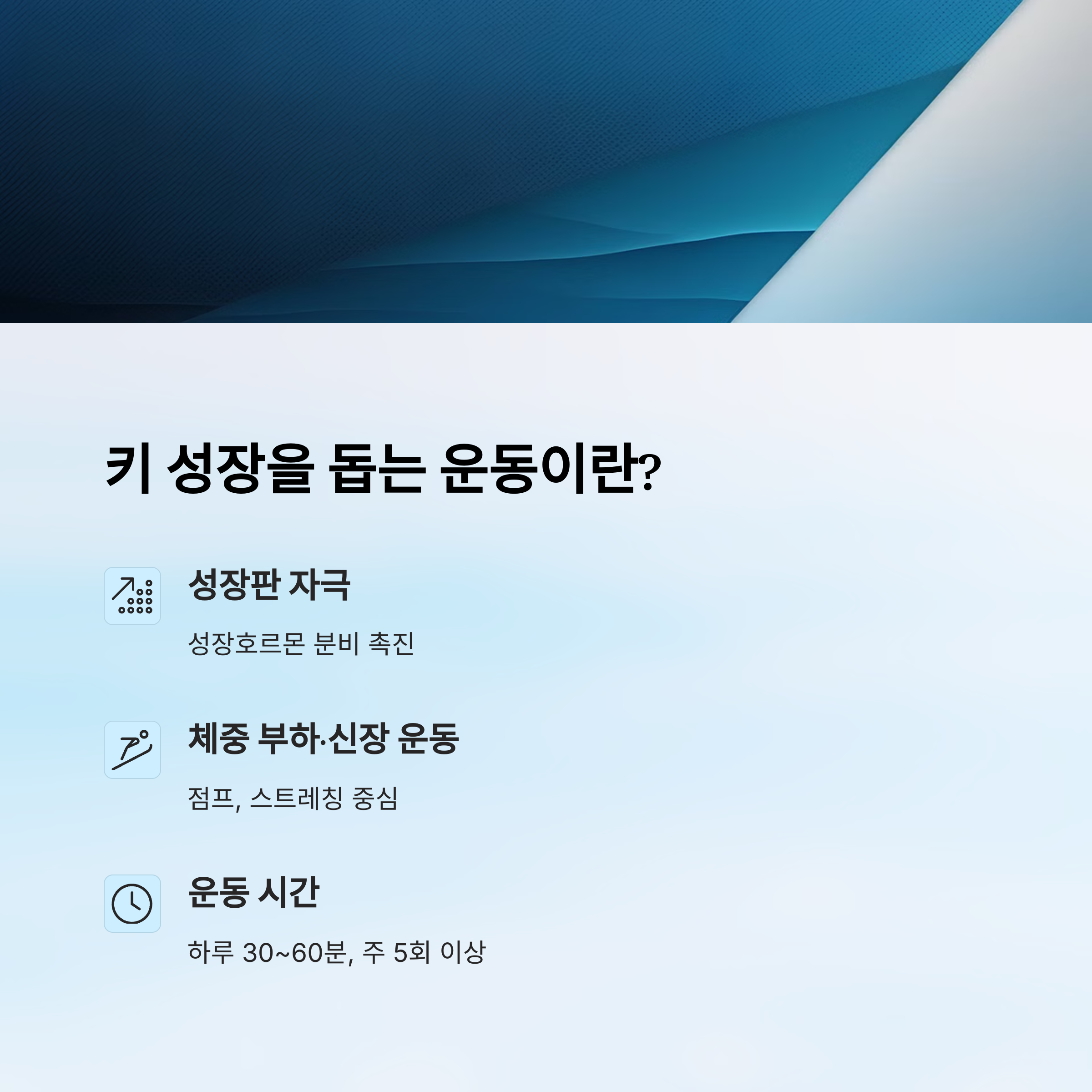 | 점프 운동 | 성장판 자극, 하체 강화 | 10~20분 | 주 5회 |